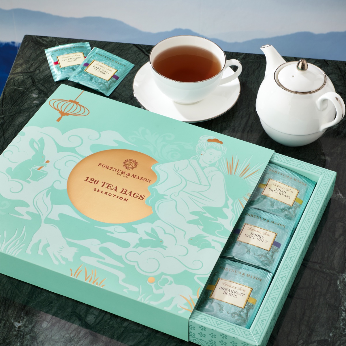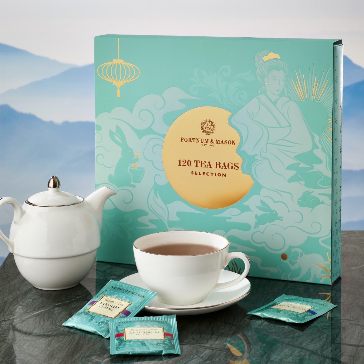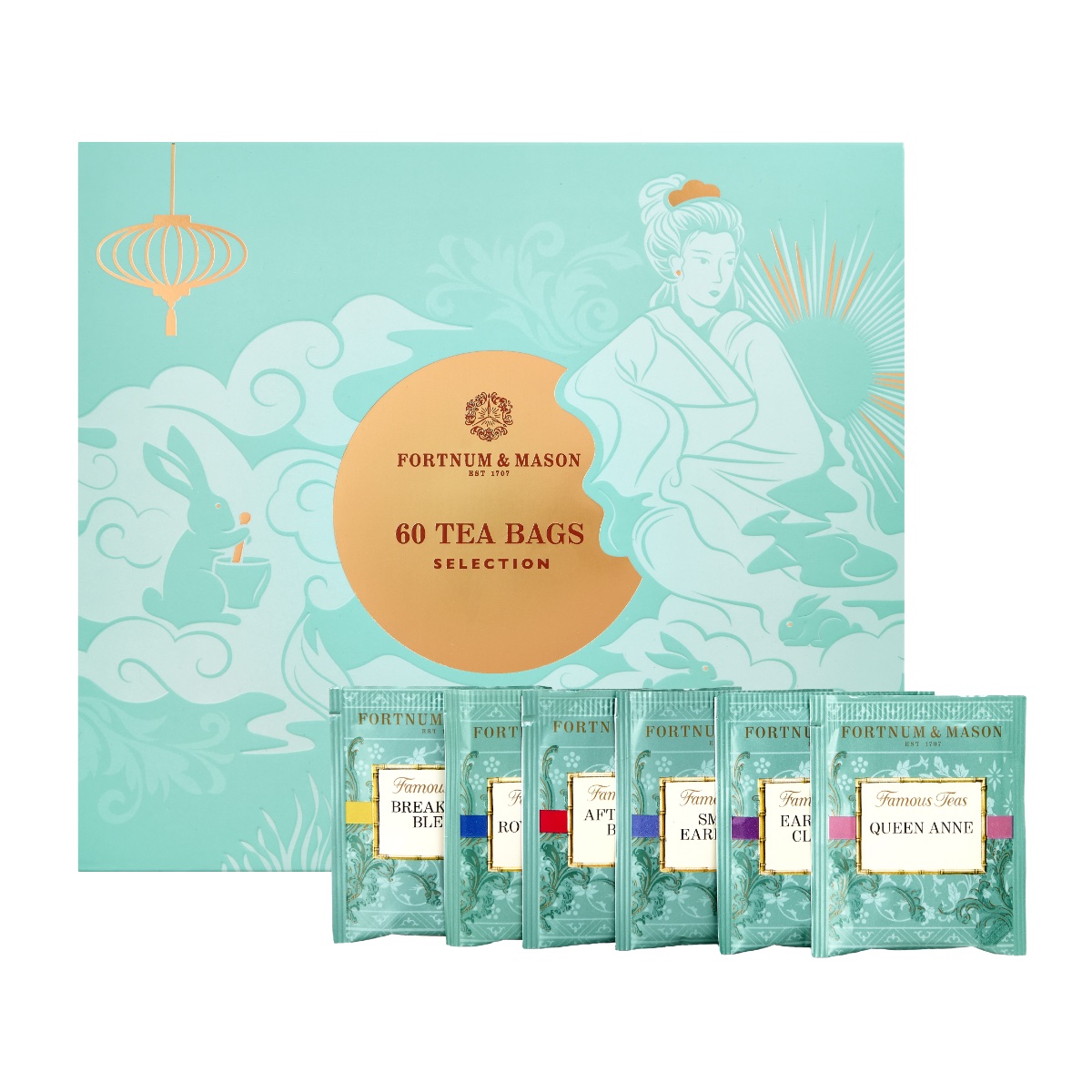 第二款是Famous Tea Selection, 60 Tea Bags禮盒,能夠在中秋節中邊呷 Fortnum’s 茗茶,邊細嚐美點。茶包禮盒精選 6 款著名茗茶,包括皇家紅茶、 早餐茶、午後茶、安妮女王紅茶、經典伯爵茶及煙燻伯爵茶。