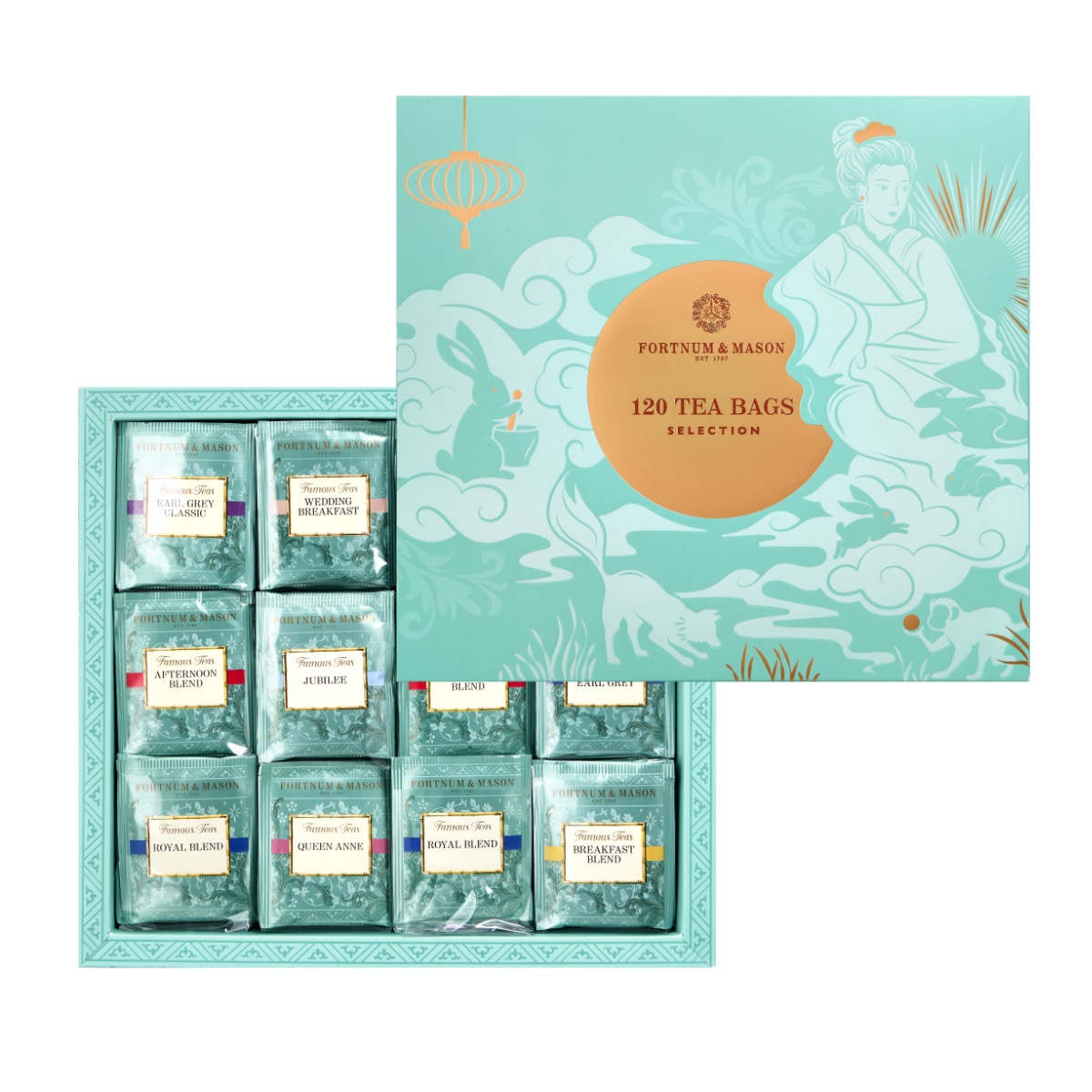 最後的Famous Tea Selection, 120 Tea Bags禮盒,則提供了Fortnum’s 精選的經典茶包,包括皇家紅茶、 早餐茶、經典伯爵茶、午後茶、安妮女王紅茶、英女皇白金 禧紀念茶、愛爾蘭早餐茶、婚禮早餐茶及煙燻伯爵茶,滿足茗茶愛好者的不同喜好,找出與月餅最完美的配搭!