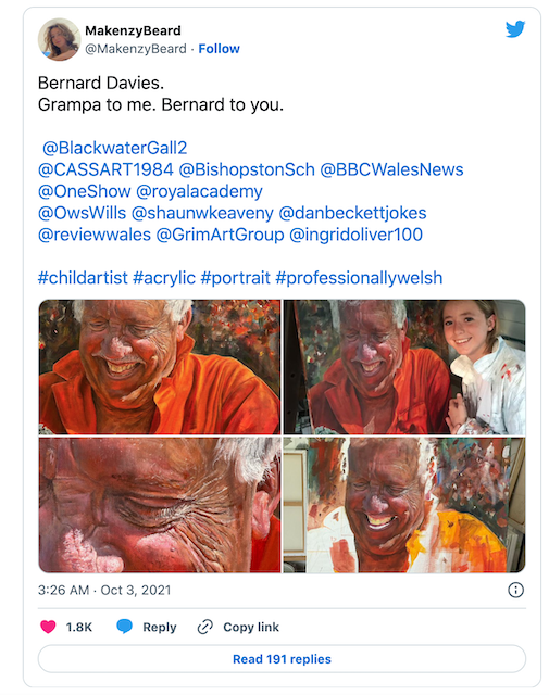 年紀大小並不能判定是否有才華的標準,英國一名15歲少女Makenzy Bear於疫情期間忽發其想,利用家中剩下的顏料、畫布和畫筆畫畫,沒料到自己竟然有畫畫天份,特別是擅長肖像畫,經常以周遭的農夫、勞工人物作為畫畫主題,這些作品深受藝術家讚賞,一幅畫更賣出2.3萬英鎊(約20萬港元)。