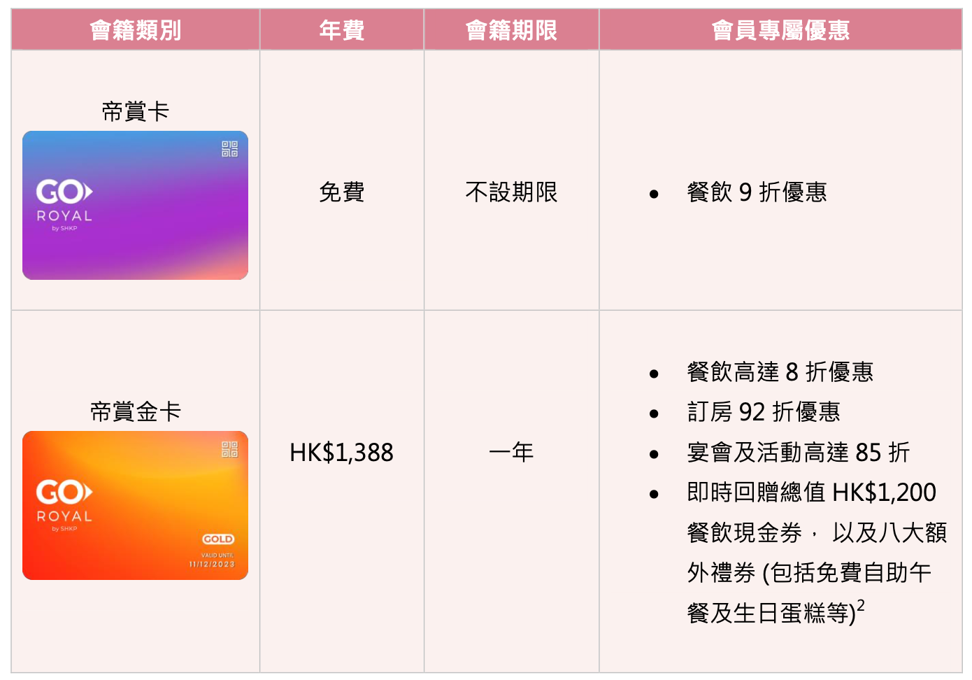 2優惠受Go Royal金卡會籍之餐飲現金券及額外優惠禮券之條款及細則約束。