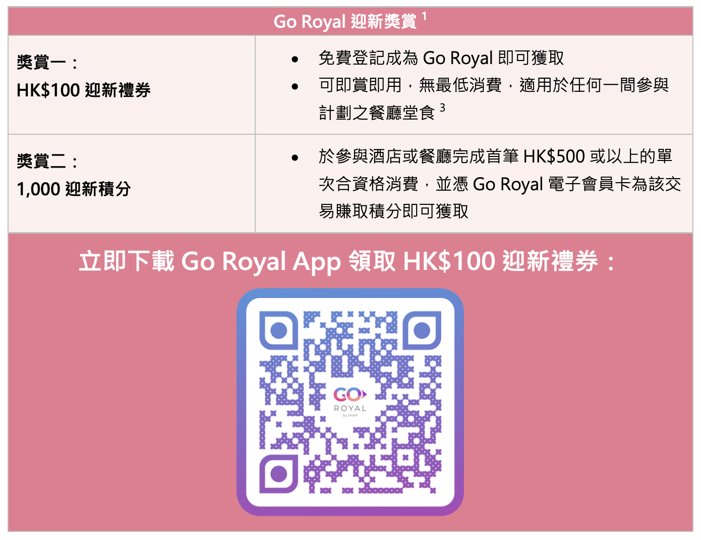 【7 月底前免費加入成為 Go Royal 會員,於參與餐廳可即賞即用 HK$100 迎新禮券,無最低消費,全單幫您立減 HK$100﹗】