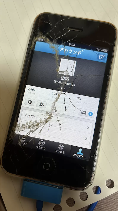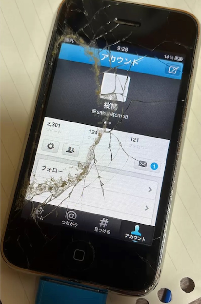 日本網友泥散らす(Dorochirasu)在二手店買下的iPhone 3GS 螢幕接近全碎,下方更有久違的HOME鍵,背面黏上價錢¥100,沒有鏡頭。iPhone 3GS於2009年發怖,至今距離13年,絕對是史前遺物,加上手機上一手主人沒有登出Twitter,於是抱著好奇心一探究竟。