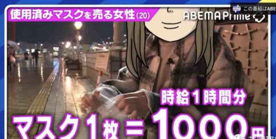 失業率上升,不少失去工作的日本女生以及女學生都於Twitter上留下「佩戴過的原味口罩」的帖子,根據節目組觀察,出POST後短短幾分鐘內已經收到幾十個私訊。一位名叫雄介的43歲男買家已經購買了100個原味口罩,他更表示購買原味口罩主要是因為喜愛口罩上的氣味、唇印及粉底痕。