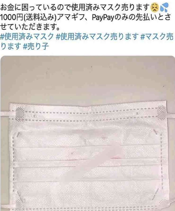 自疫情於2019年大爆發後全世界經濟受到重創,加上旅遊業完全停止,令經濟衰退,不少人工作不保。雖然自疫情爆發前日本人也有配戴口罩習慣,疫情後的更成為必需品,想不到用過的口罩竟然變成新興的賺錢手法。聽起來有些荒謬,但的確有價有市!