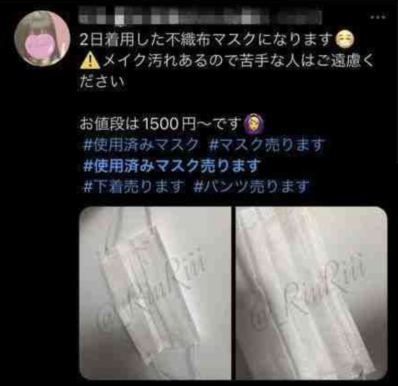一個原味口罩的價格約於¥1000 (約63港幣),而女生們亦會直接表明自己有經濟困難,販售用過的口罩來賺取額外收入,有興趣的人可購買!除此之外,原味口罩價格也會以不同的要求而加價,氣味越濃郁販賣的價錢更高。