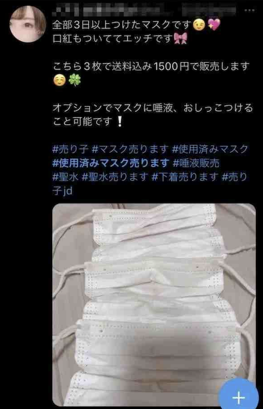 日本失業女生興起於twitter販賣「佩戴過的原味口罩」!買家:注重唇印+甩妝效果+體味口罩