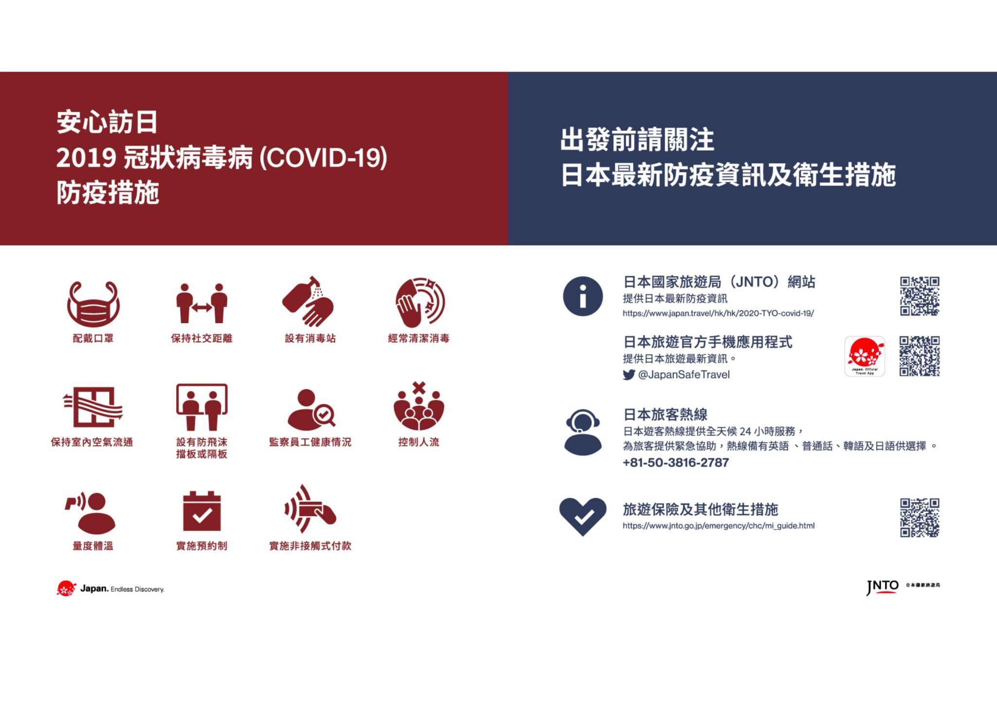 此外,日本國家旅遊局正在採取以下措施,以消除赴日遊客對新冠病毒疫情的擔憂。