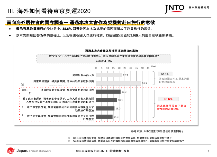 ・赴日旅遊的需求不斷增長- 外國對東京2020的看法