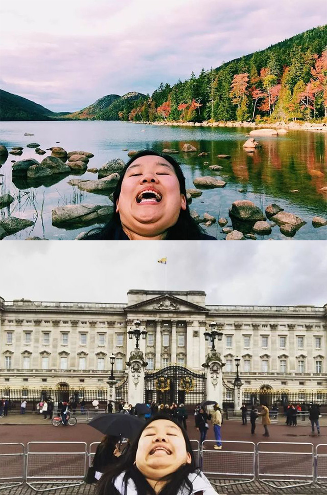 一般人出門旅行都會拍攝美美打卡照留下倩影,不過太多人用相同角度拍照,令照片千篇一律!美國波士頓一名華裔女孩Michelle Liu希望為自己的旅程留下與別不同的風格照片,決定採用獨特的低炒風格拍攝雙下巴照片,雖然她的旅遊照一點也不美,但笑點十足,在網路上爆紅。