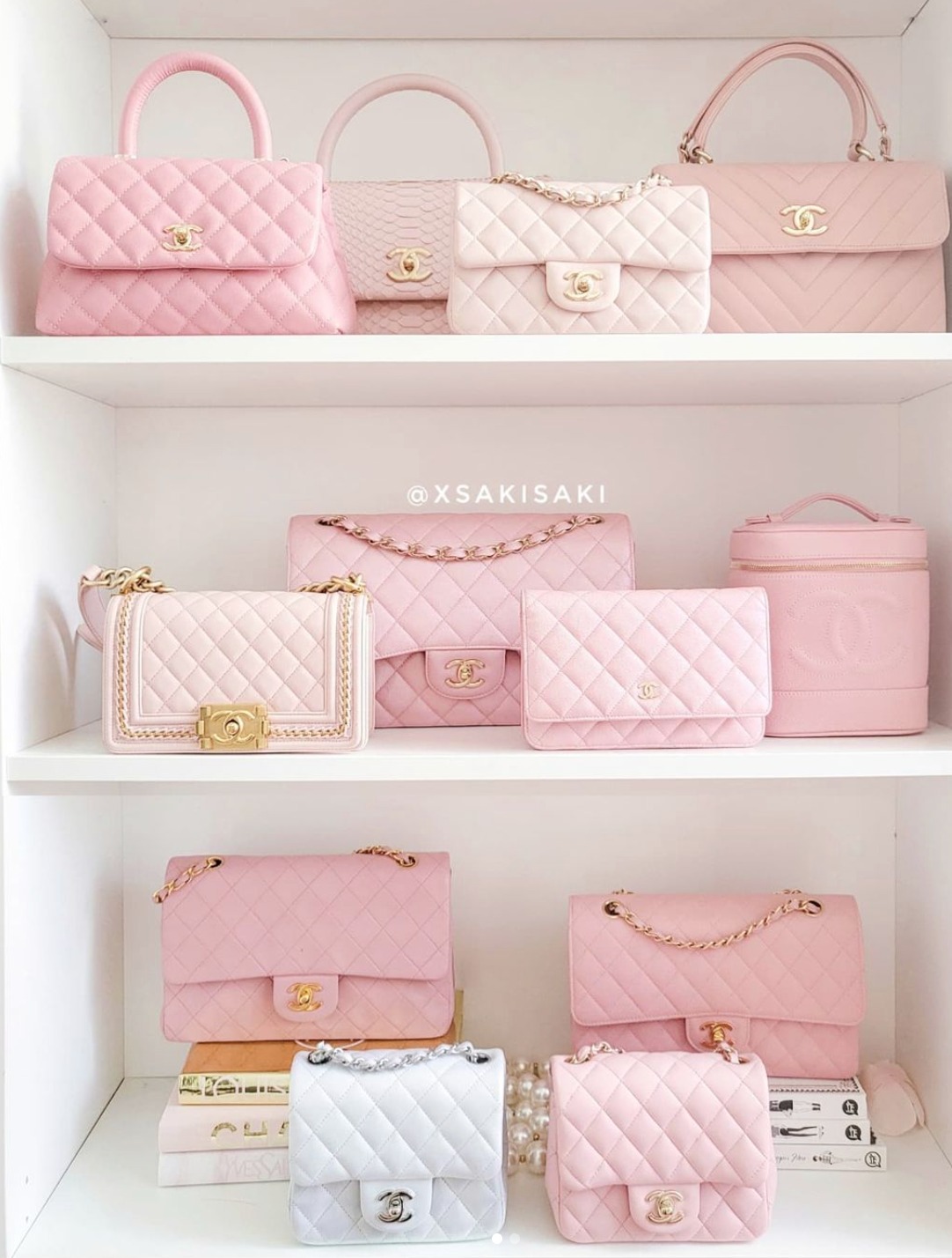 照片中得知Saki應該是Chanel的忠粉,單單是經典Classic Flap Bag已經收藏了多款粉紅手袋,而且她對粉紅色的分類非常仔細,集齊不同深淺色調,BOY CHANEL、Medium Flap Bag、Trendy CC Bag 都被Saki入手,而且連粉紅色Hermès Kelly都被囊括其中,可見她財力雄厚。