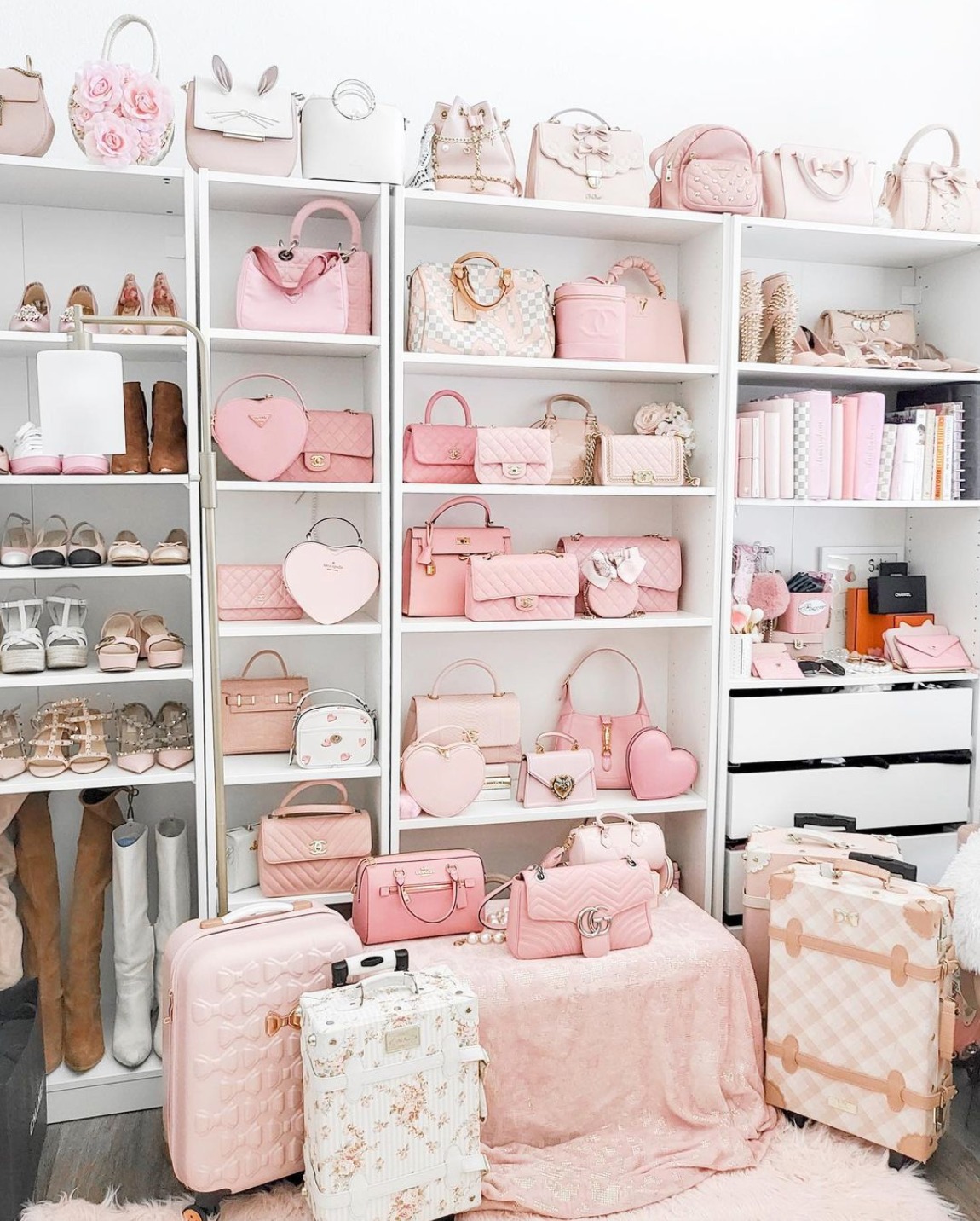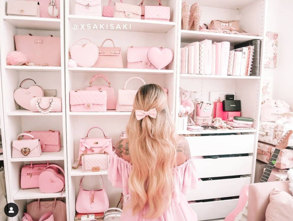 粉紅色是不少女生都喜歡的顏色,夢幻的粉色調令少女心爆發,不過美國一名90後KOL Saki 對粉紅色情有獨鐘,全身到腳由頭髮、衣服、家居佈置、手袋、鞋履都一定要是粉紅色物件,就連名牌精品Chanel、Hermès珍藏級粉色手袋也能入手,整間衣帽間排成一面粉紅手袋牆,收集粉色手袋便成為Saki的樂趣,不過網民批評她這種行為炫富,更質疑她用假貨。