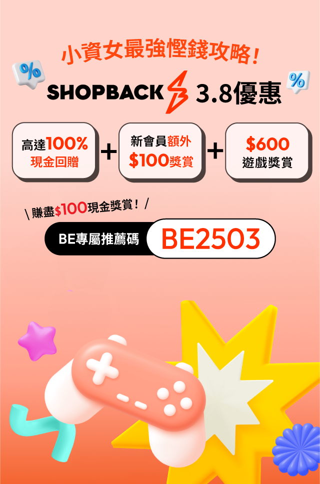 平日大家都會在各大網店網購,務求精打細算搜羅世界各地的好物,同時享有最大優惠!Shopping想省更多錢,一定要用網購現金回贈平台ShopBack,3月8日更有ShopBack 3.8優惠,不但有更高現金回贈,仲有新會員額外回贈、遊戲獎賞等。編輯已經為大家整理好最強慳錢攻略,立即趁平囤貨啦!