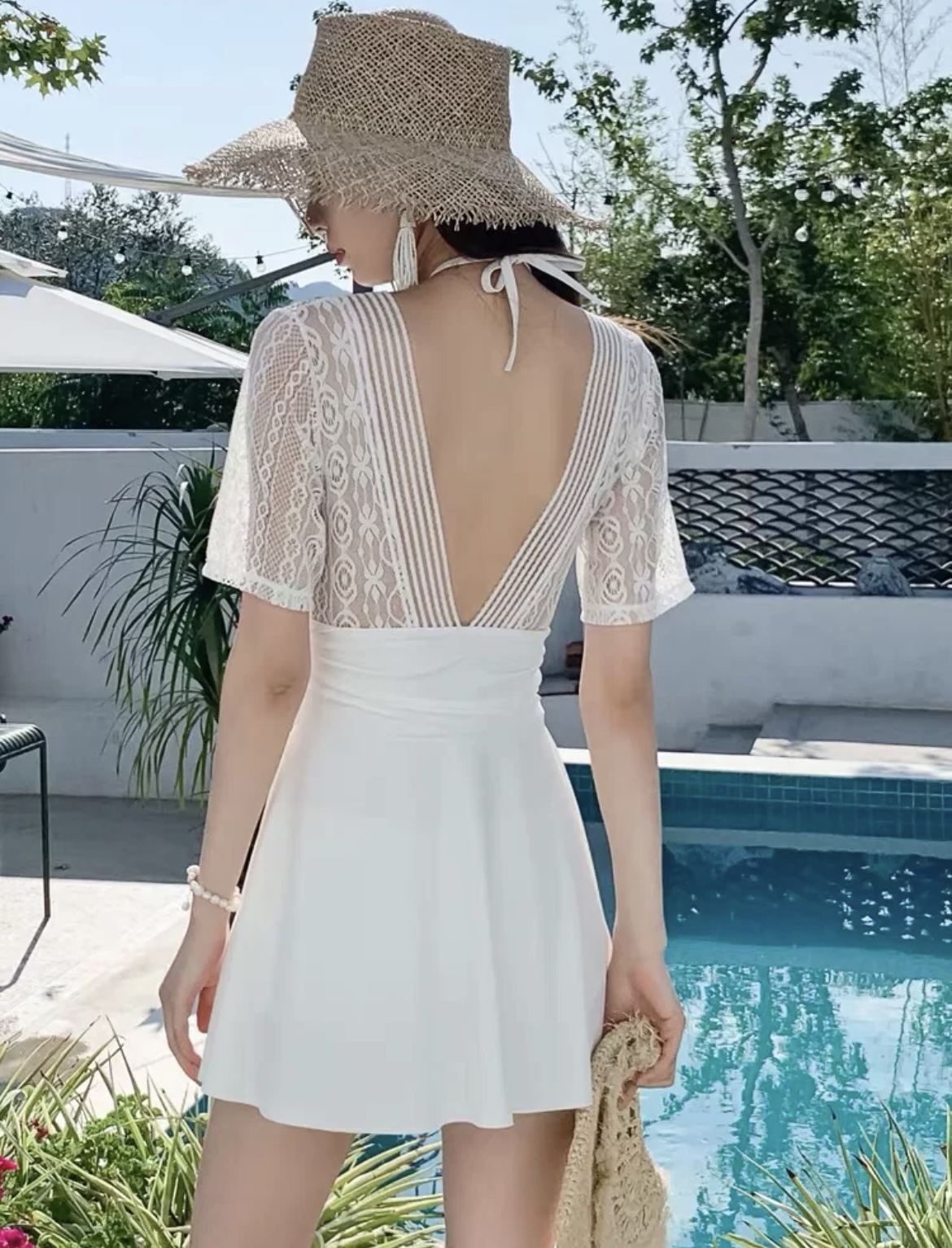 覺得穿三角褲型泳衣太害羞的話,不少女生都會選擇有裙擺的保守款式~不過下水後,裙擺就好似水母一樣,一直散開浮在水中,不但會增加阻力影響活動,亦失去了覆蓋的作用!