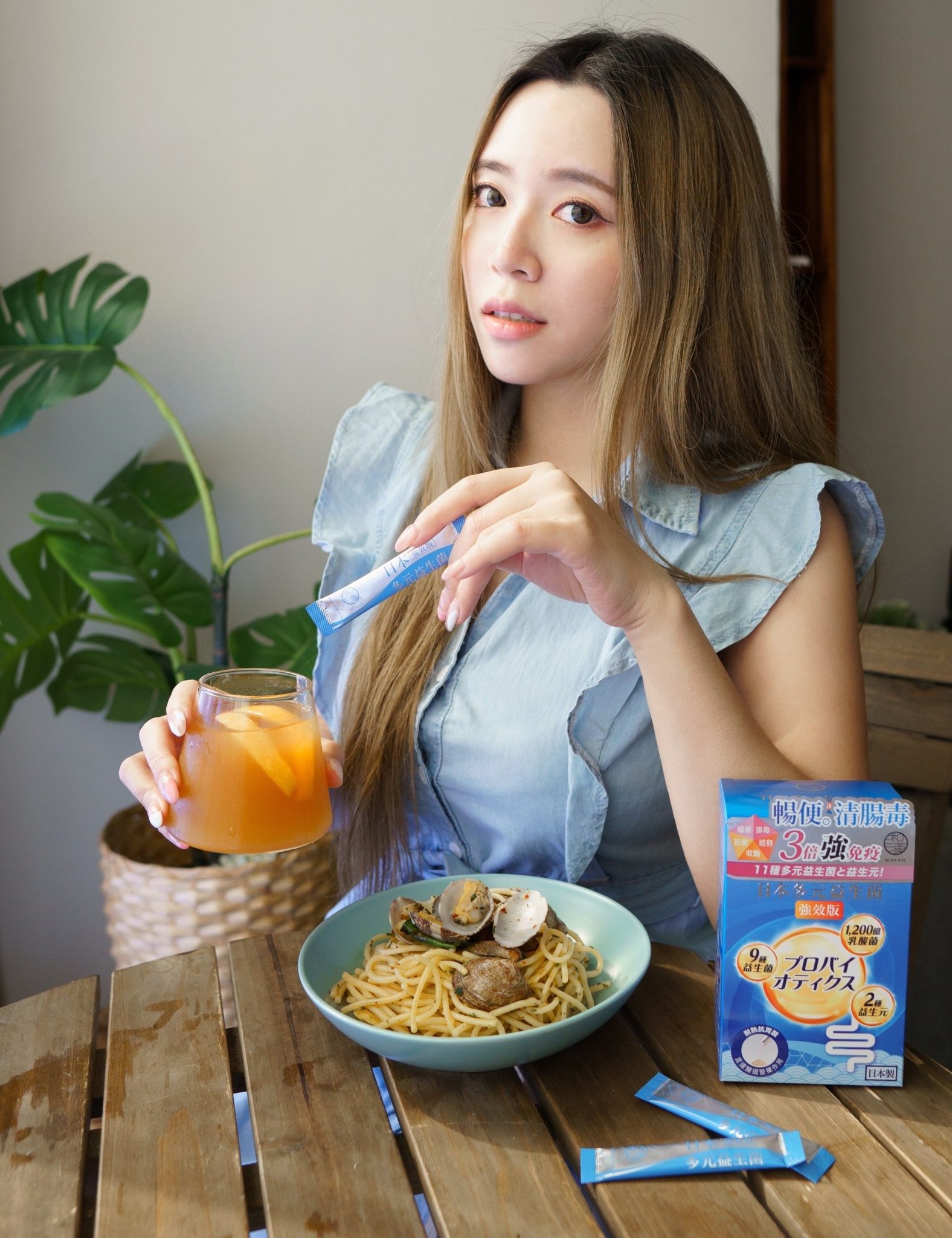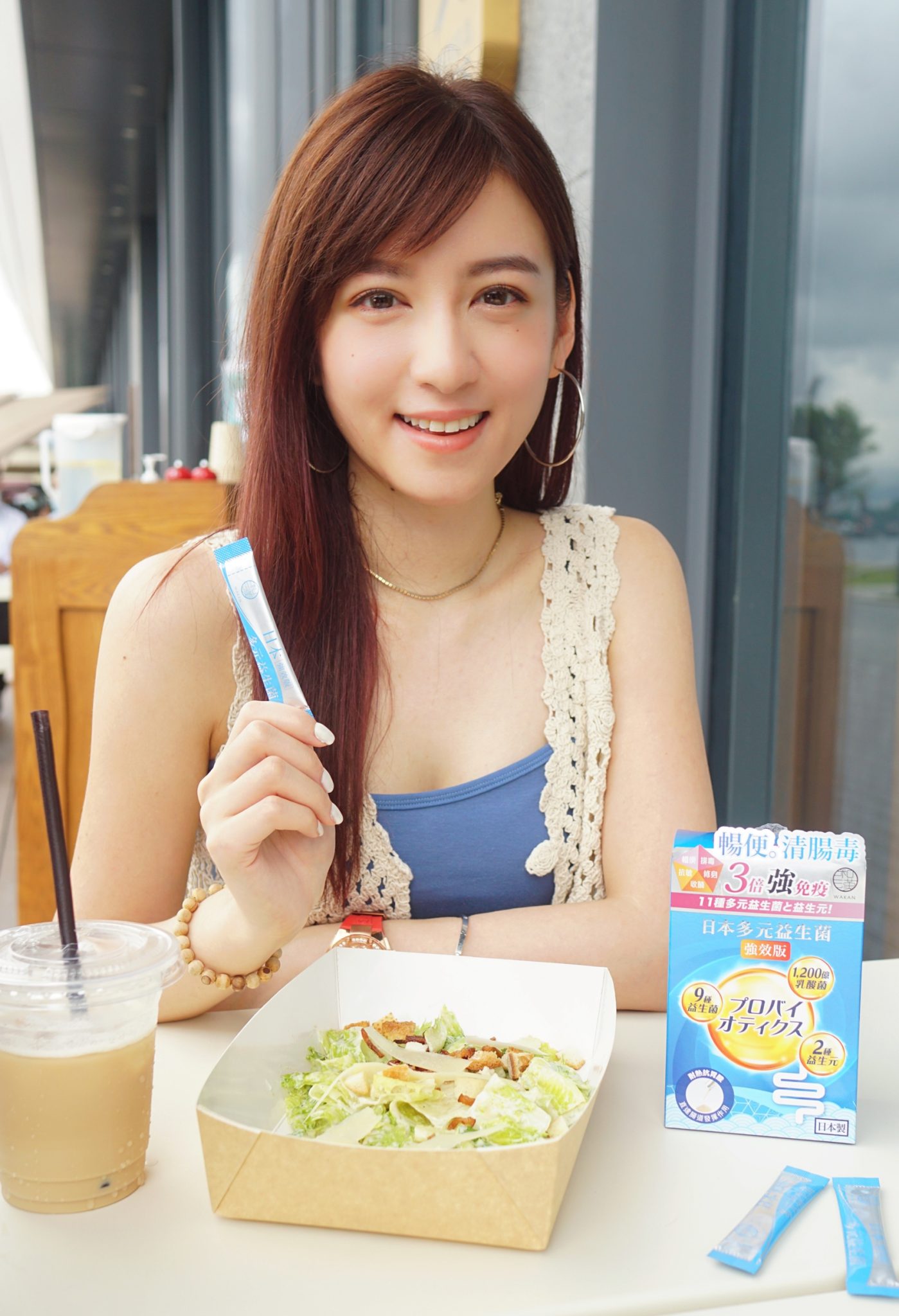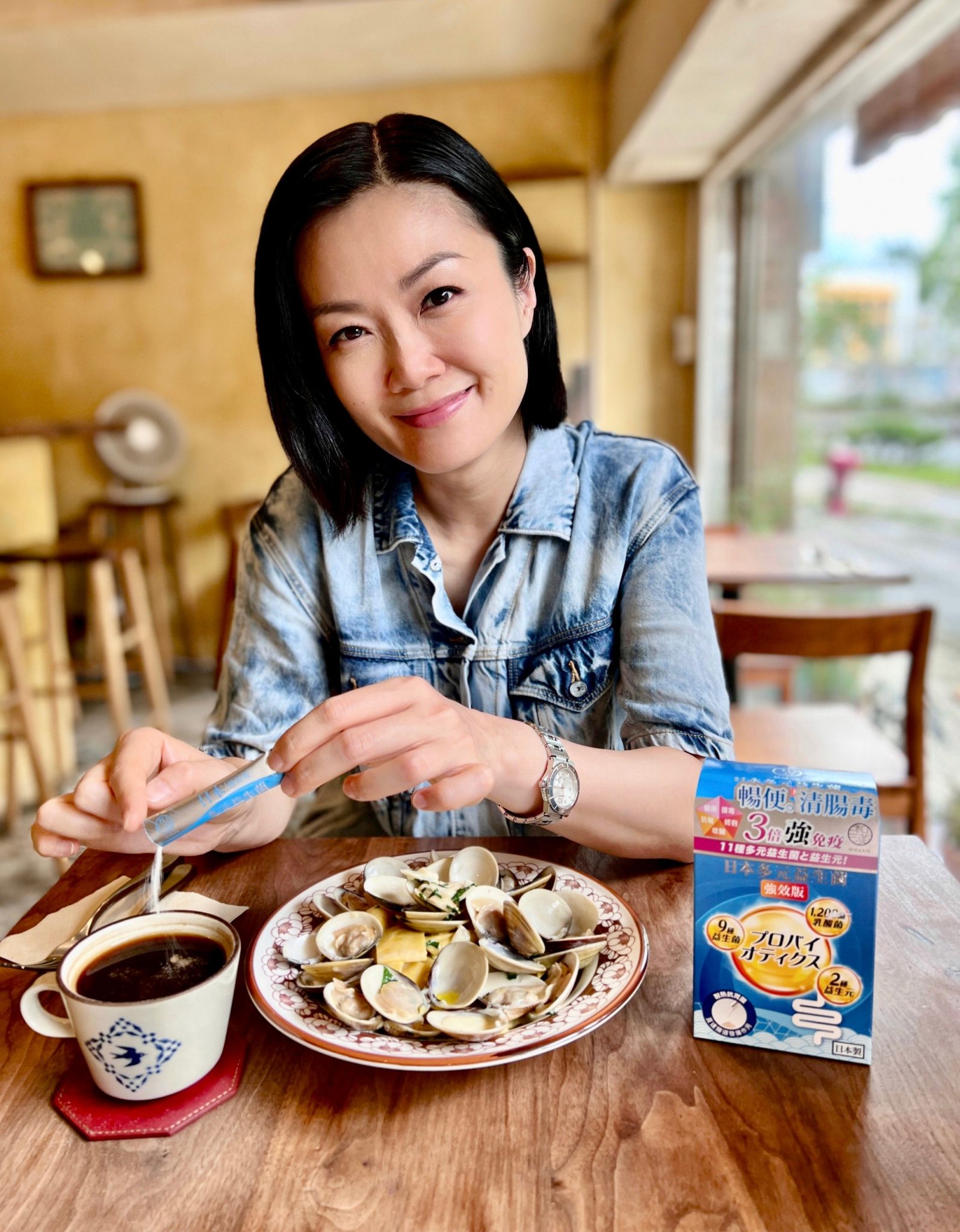 她近期就經常Chill住嘆一款很流行的日本製和漢益生菌,這款粉劑益生菌可以加入冷熱飲品或食物,她最愛加入齋啡一齊飲用,三個月間感到腸道有明顯改善——辦大事無難度!暢便排毒的強大效果,原來全靠當中的9款益生菌+2款益生元,一包含有1,200億乳酸菌,比單一菌更有效平衡腸道健康,日日定時清腸毒和宿便,肚仔自然收細,更加輕盈!