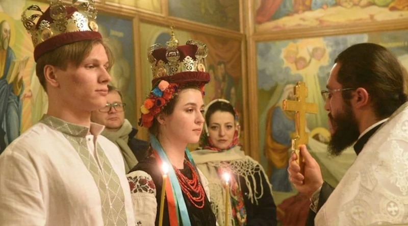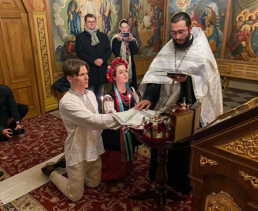 外媒報導兩人是在2019年基輔一場示威活動中相識,然後發展成情侶,原本打算於5月6日完婚,但未料到國家竟被俄羅斯攻打,由於亂世中沒法確保任何未來,所以兩人決定提前完成終身大事,婚禮地點就在基輔的聖邁克爾大教堂(St. Michael’s cathedral)舉行。亞利娜形容婚禮是在飛彈襲擊和空襲警報聲中完成,當禮堂內進行喜慶活動,但外面卻是槍火連天,心情沈重。