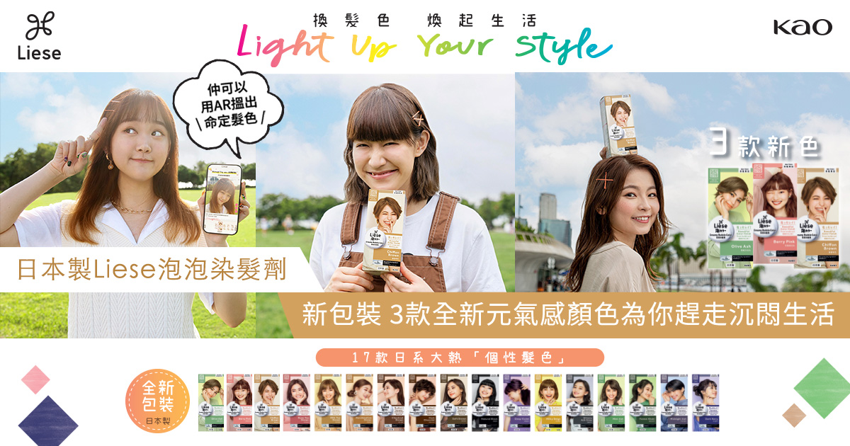 和穿搭化妝一樣,髮色可以打造強烈的個人風格,想一趕死氣沉沉,由日本製的Liese泡泡染髮劑就幫到你啦!它們最近不但換上全新包裝,以新造型示人,更有17款大熱日系髮色任你選擇,當中有3款全新推出的元氣顏色,讓你可以以明亮的髮色喚起生活,輕易繪出獨特的個人風格!