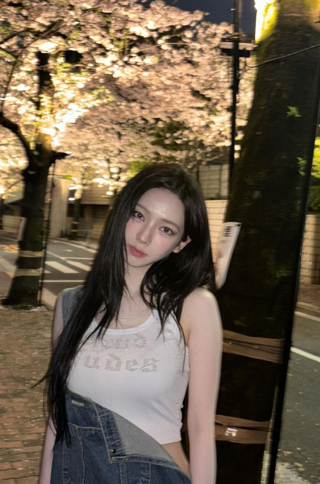 她的造型比櫻花還矚目?Aespa Karina 的「賞櫻衣著」引起了話題!