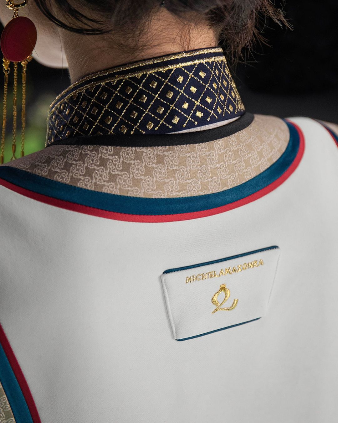而為蒙古設計出這件代表隊制服的更不是什麼國際大品牌,而是由當地服裝品牌 Michel & Amazonka 操刀設計!這件蒙古代表隊制服巧妙地糅合蒙古國旗的紅黃藍三色、各種傳統圖騰以及運動服飾設計,精緻而充滿蒙古特色.據蒙古奧委會表示,每套服裝至少縫製超過20小時才完成,因此此系列的制服,前後足足花了3個月時間才完成製作!