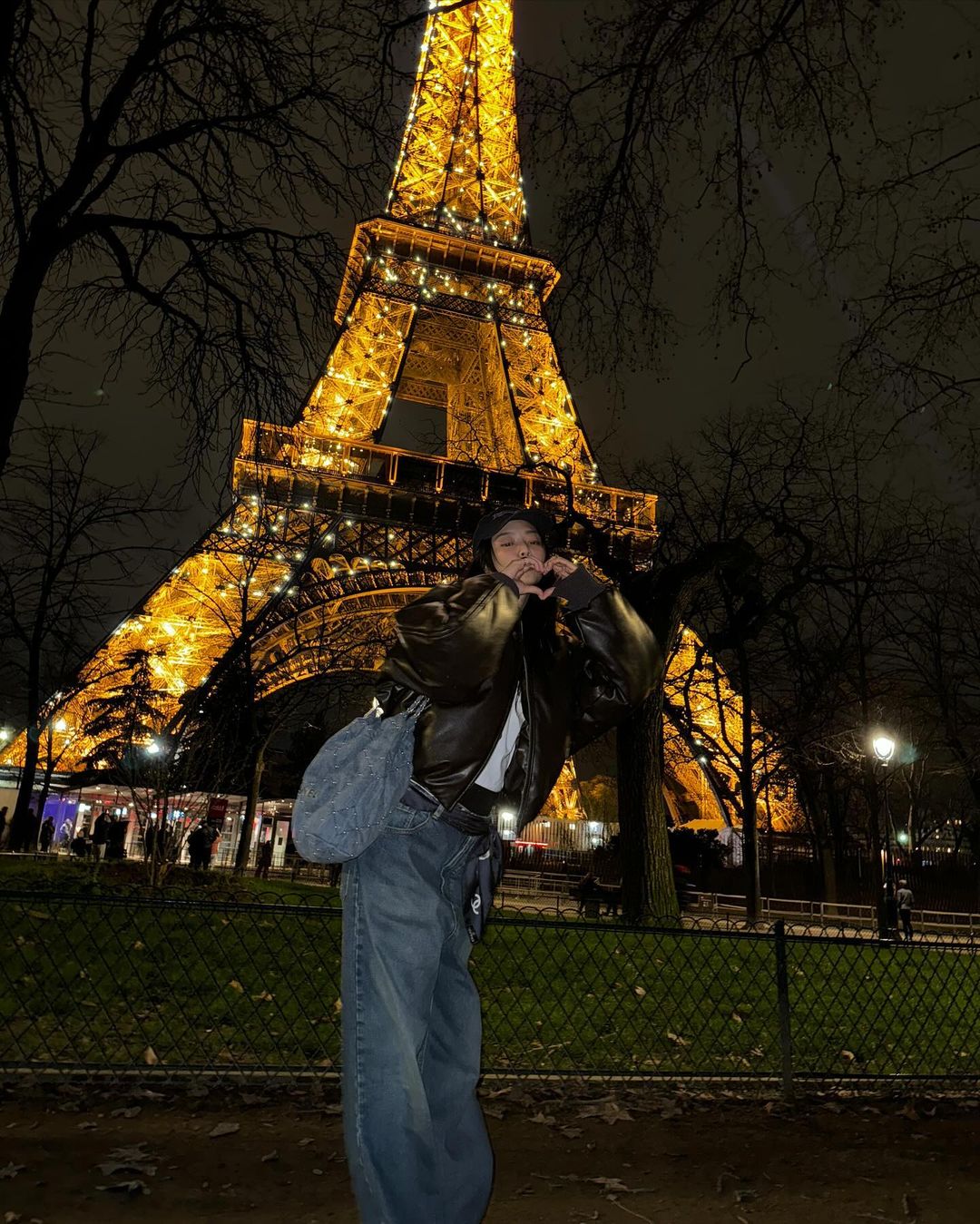 根據 Jennie 在其 Instagram 上上傳的照片,她在巴黎時巧妙地以「Denim On Denim」造型示人,不過 Jennie 的「Denim On Denim」並不是一般以牛仔外套搭配牛仔褲,而是以「牛仔袋」搭配牛仔褲,上身則穿著一件 Acne Studio 的 Boxy 剪裁的黑色皮革外套,腰間還以絲帶綁繫蝴蝶結作腰帶和裝飾兩用,令她一身造型看起來既精緻,又不失可愛感!
