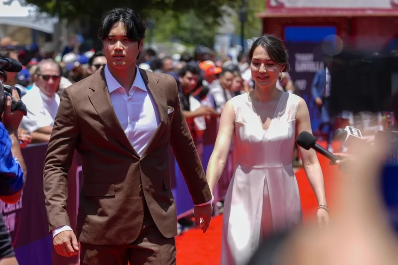 在這次的紅毯環節中,大谷翔平和妻子田中真美子打扮得相當得體般出席——大谷翔平穿著棕色西裝現身,而妻子田中真美子則身穿白色連身裙,盡顯優雅氣質。