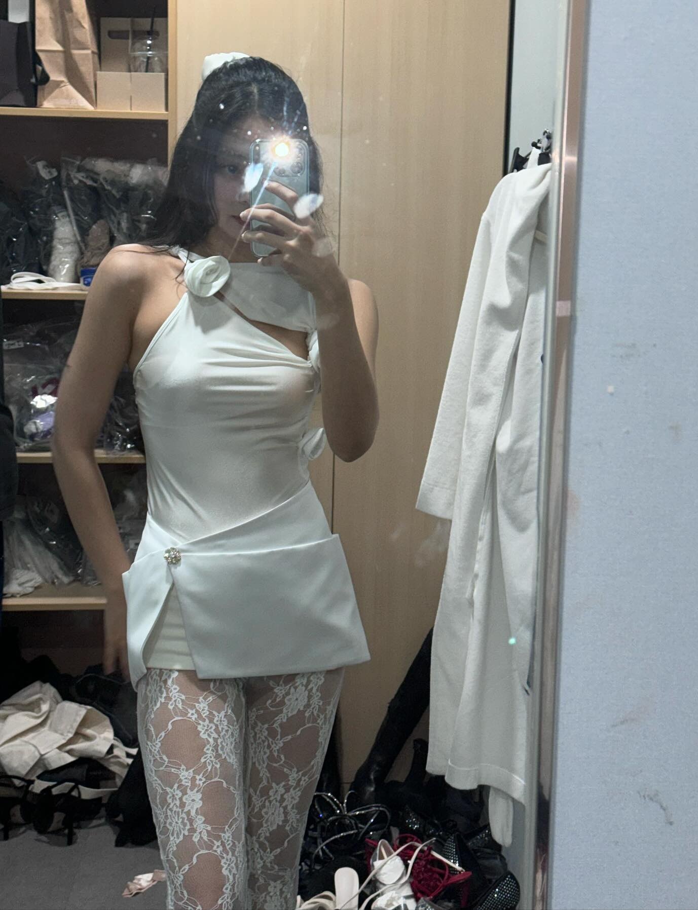 而無獨有偶,原來較早前 Jennie 在登上《李孝利的紅毯》節目時,也穿上了同款的白色連身裙。當時 Jennie 把裙子的長度改短並搭配蕾絲的絲襪,令造型增添了一份柔美感,猶如公主一樣清純優雅!
