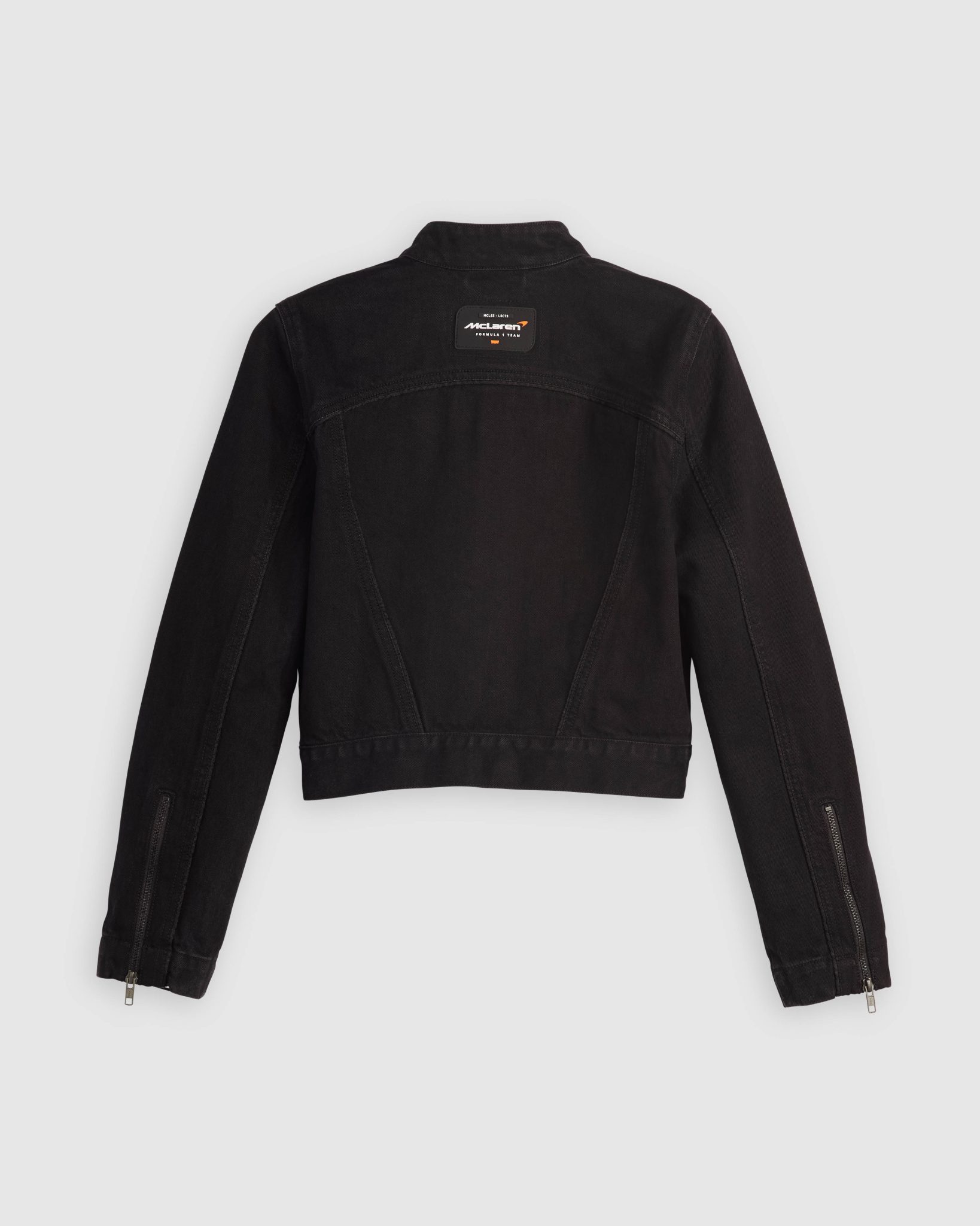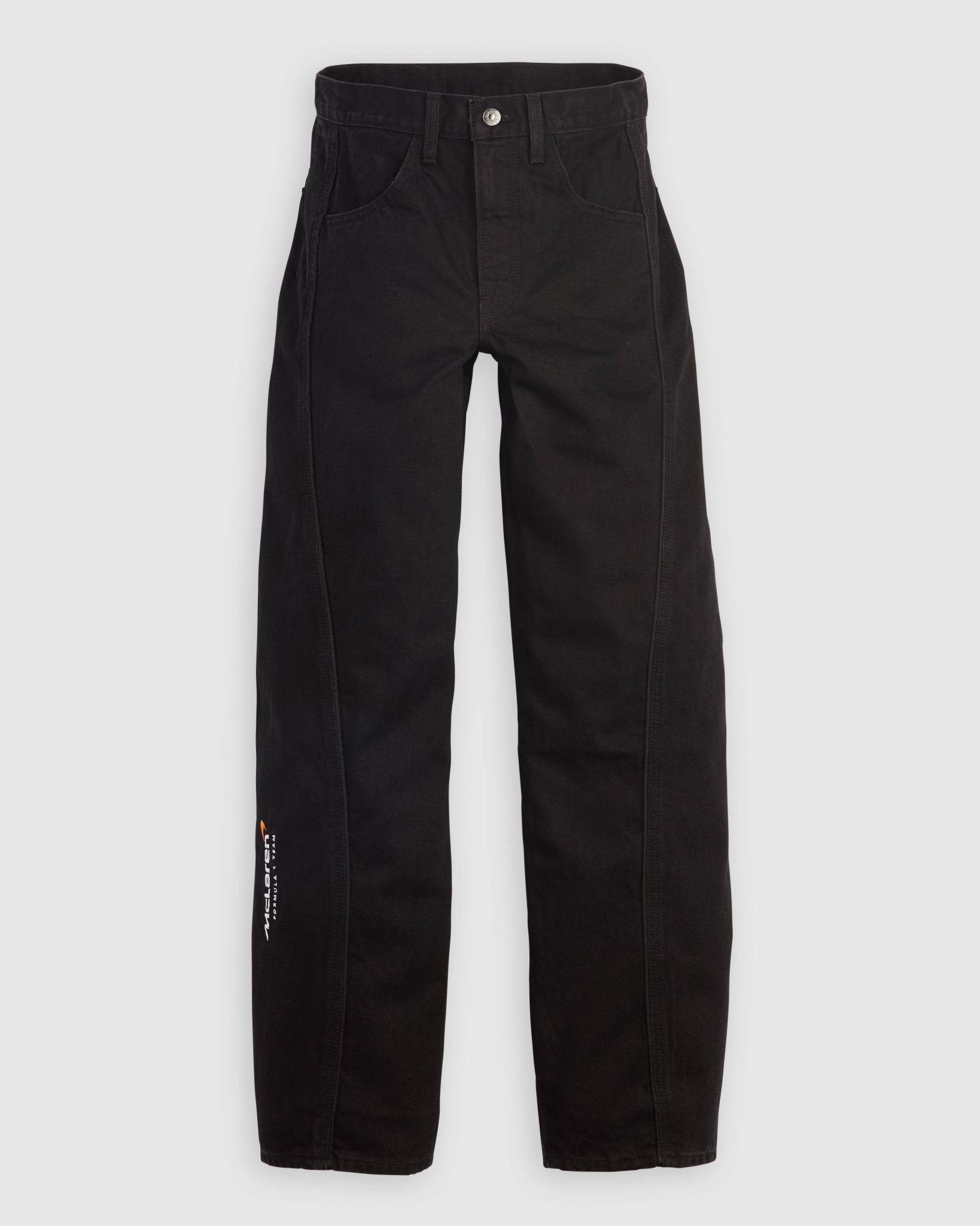 值得留意的是,今次 Levi’s x McLaren 聯乘還特別提供女裝,包括有運動風的黑色飛速牛仔褸則是向傳統賽車外套致敬,頸部雙啪鈕及腰部啪鈕設計,前襟配有雙向拉鍊加上兩邊袖口拉鍊,前胸有「McLaren FORMULAR 1 TEAM」刺繡字樣;與之搭配的飛速牛仔褲以寬鬆的 Baggy Dad 版型,採側幅拼接和滾邊營造立體剪裁設計,褲腳位有「McLaren FORMULAR 1 TEAM」刺繡字樣及後褲袋縫上特製的聯乘橡膠牌;還有橙色亮面長袖高領緊身上衣是以 McLaren 車隊模組化印花為靈感。