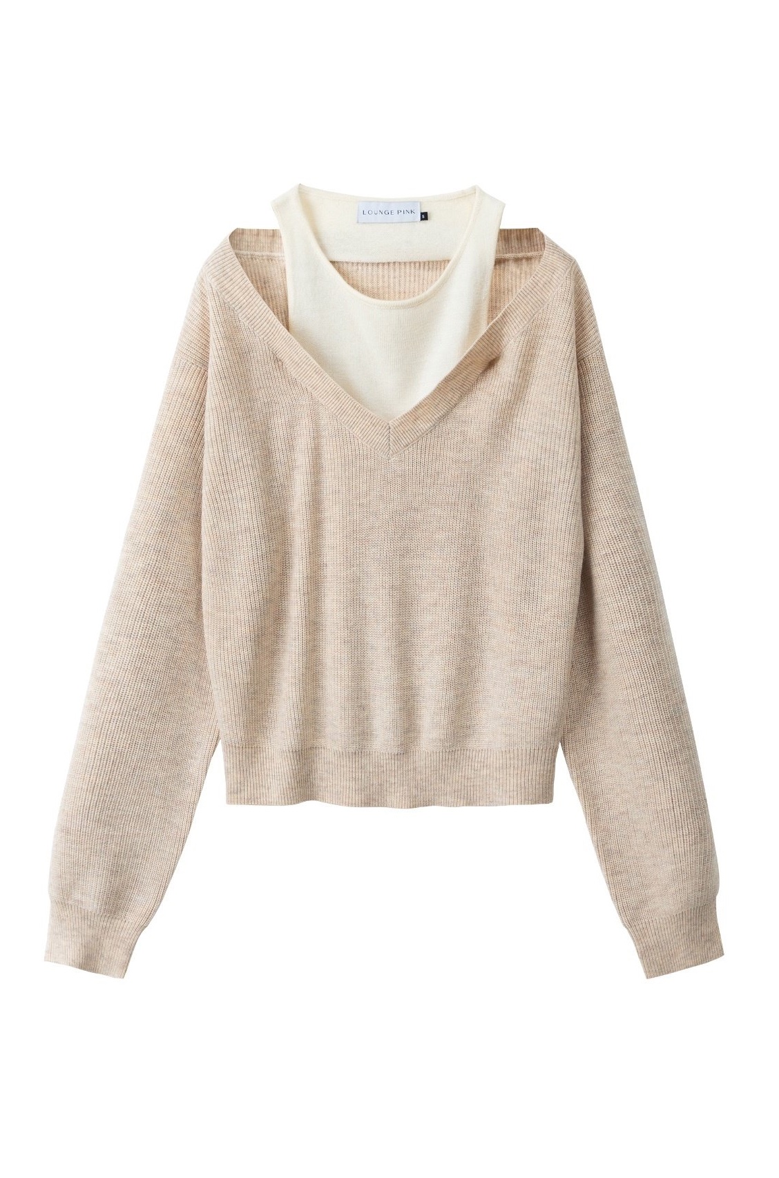 除此之外,LOUNGE PINK還設計了層次感豐富的假兩件露肩針織上衣,修長短身的設計,配上簡潔利落剪裁,並以手感舒適的羊毛混紡面料織成。小背心露出鎖骨的設計,帶點可愛又有點小性感!外層配以一層V領口,增添優雅的女性魅力,隨心襯搭短裙、短褲或牛仔單品都就散發著溫婉的魅力。開始在入手秋冬單品的女生不妨去門店逛逛吧!