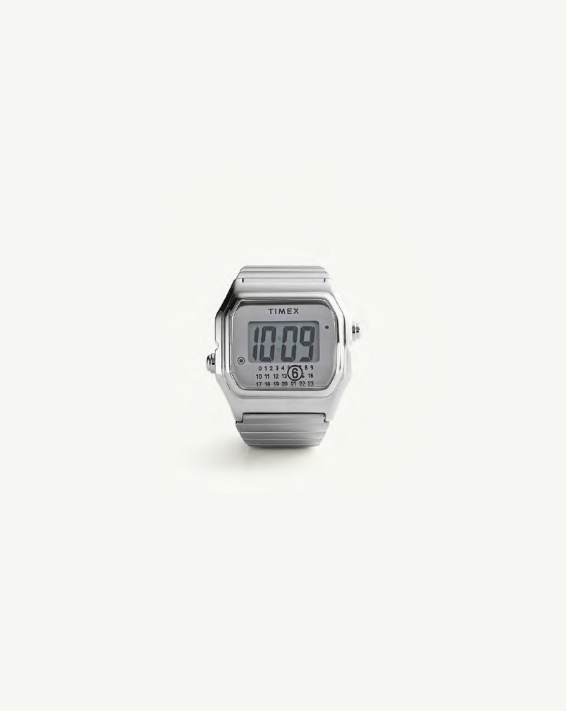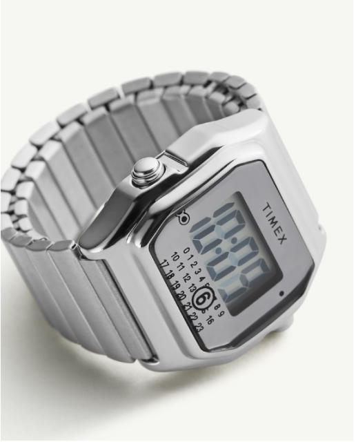 而 MM6 X Timex 戒指腕錶則是對復古風格 T80 的重新想像,戒指腕錶採用拋光不銹鋼錶殼和全拉絲不銹鋼擴展帶,適合佩戴在手指上,設計大大顛覆傳統的計時觀念!
