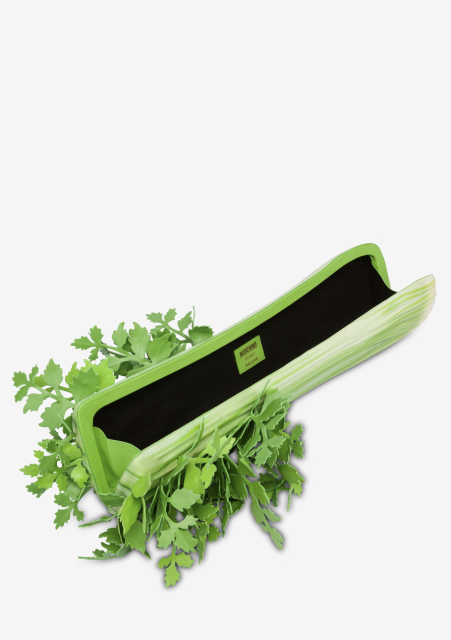時裝品牌 Moschino 向來以幽默而天馬行空的設計而深得不少人愛戴。新任創意總監Adrian Appiolaza 加入品牌後,便延續品牌的一貫幽默感,在上任後首個系列便馬上推出了一款「芹菜包」,隨即成為引起不少注目。