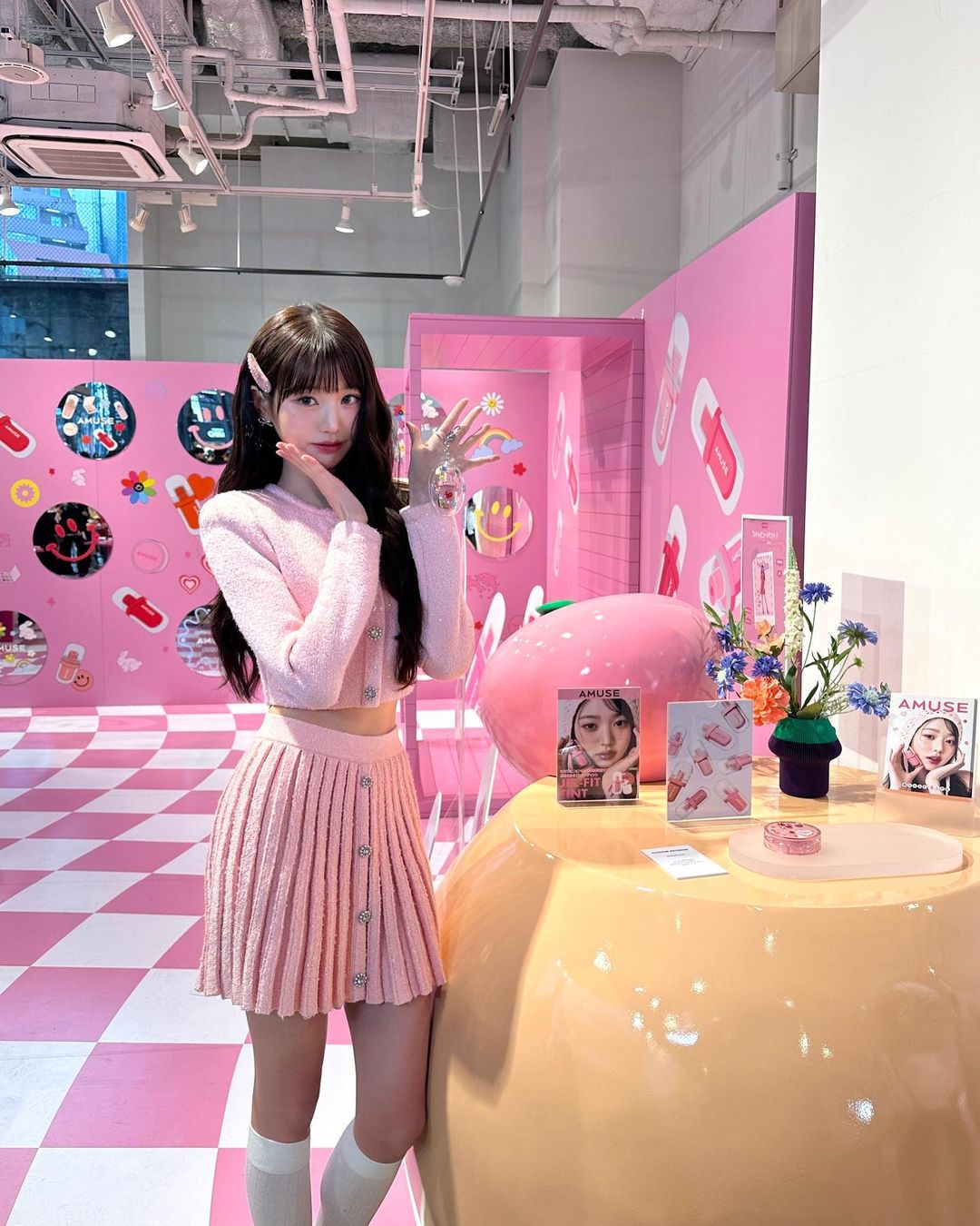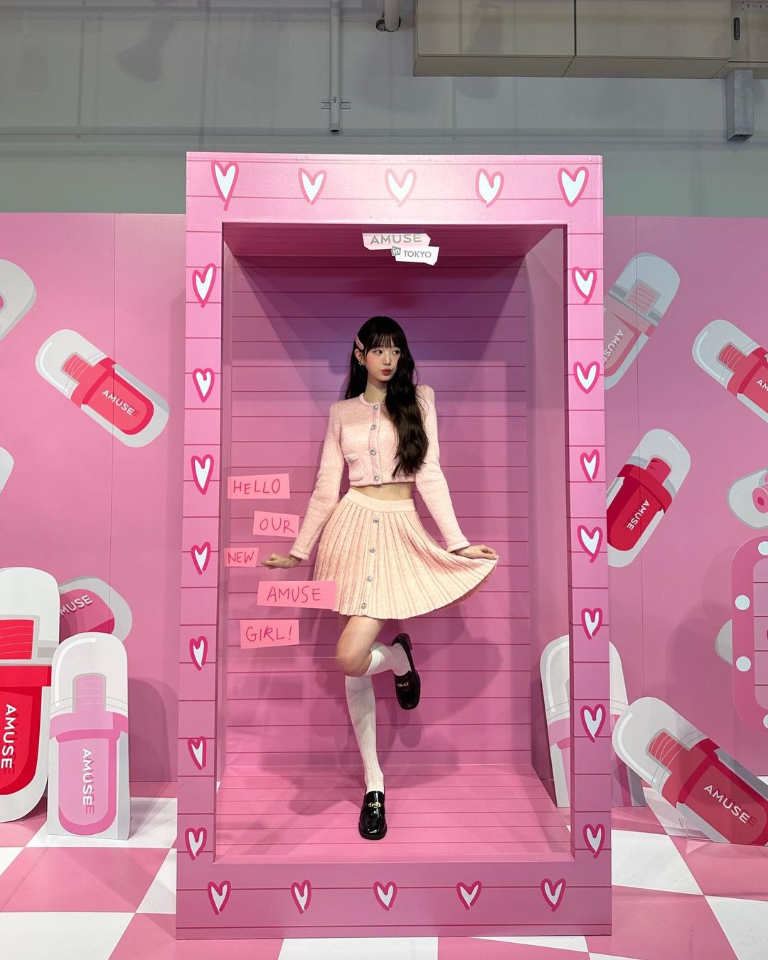 早前,張員瑛出席她有份代言的美妝品牌AMUSE於日本舉辦的活動時,穿上粉紅色的針織圓領外套搭配百褶裙,下身以長襪搭配 Loafers,並以漂亮的 Miu Miu 髮夾點綴波浪長髮,一身造型非常精緻,讓她成為全場焦點!