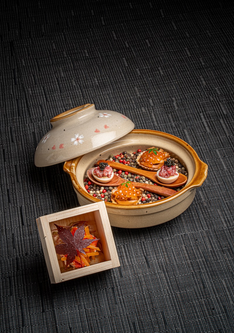 戶外的露天平台設有透明帳幕,為客人提供令人驚嘆的夜空景色、舒適的空調戶外座位和寧靜的氛圍,帶來非凡的用餐體驗。餐廳由富有經驗的廚師團隊主理,菜單融合了意大利和日本食材及創意,突出兩地文化的獨特風味和技術。