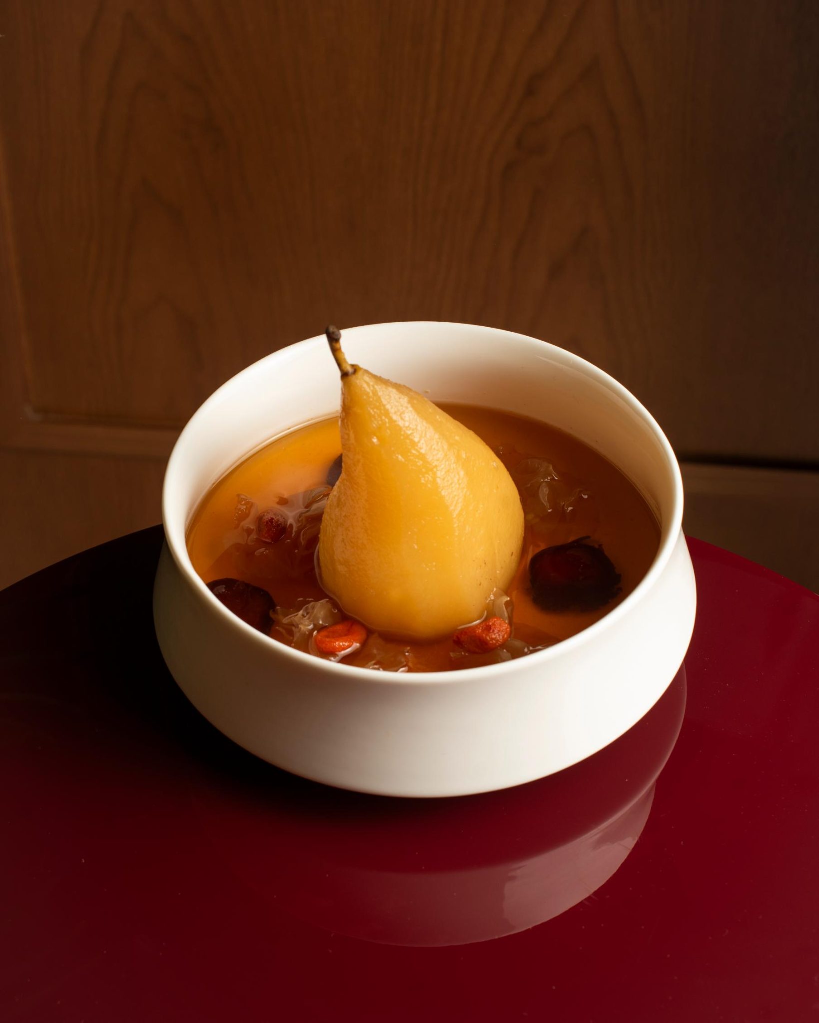 甜點方面,都以糖水為主角,將雞尾酒和糖水之間的界線模糊化,增添絲絲醉意。紅棗燉梨,可選擇添加白酒增添層次;太極豆腐花,結合芝麻糊和杏仁糊,或者是波本威士忌。