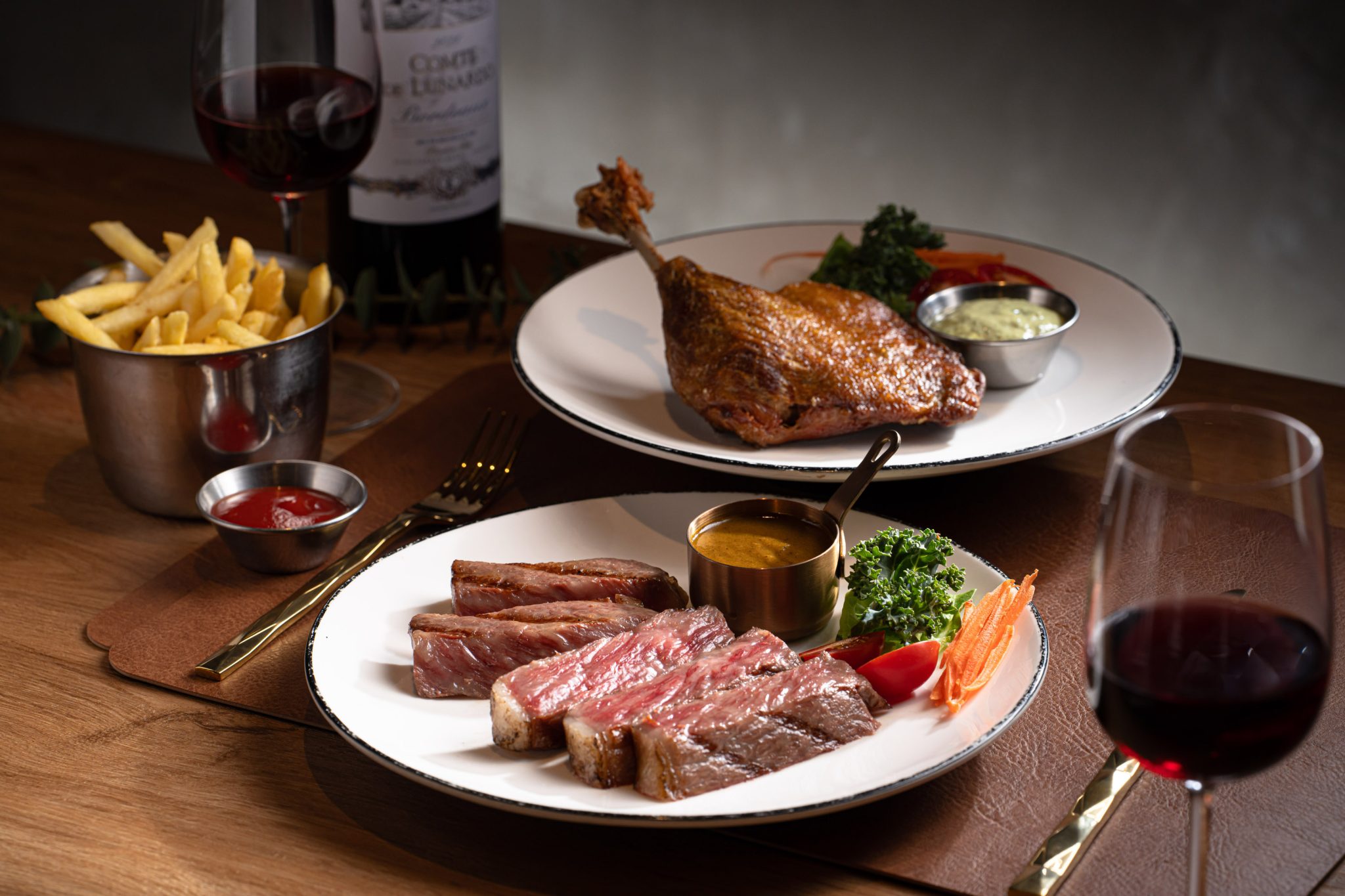 香港人一向對牛扒都情有獨鍾,為了帶給食客更多味蕾新驚喜,Supreme Steak & Grill 推出 2 款全新餐單 ,產自日本九洲的頂級 A5 和牛西冷牛扒,以堪稱完美的肉質油脂分佈,及擁濃郁牛肉香氣而聞名,以特 製扒爐精確烹調至食客要求熟度,入口即能感受鮮甜油脂在口腔內瞬間融化,齒頰留香,配上有嚼勁的肉 質,無論是點上由老闆親自調配和製作的滋味黑椒醬伴吃,或是簡單灑上鹽及香草享用皆非常滋味,讓人 不禁拍案叫絕;亦有法式經典名菜 – 油封鴨腿,看似簡單確是大廚的心機之作,需先以香草、鹽等香料將鴨 腿醃製入味,去除鴨肉本身的血水及水分,再經過油泡 36 小時、乾煎、烘烤等繁複過程,才能打造出外酥 內嫩,刀叉一碰即骨肉分離的完美狀態,吃起來鹹香味濃,配上老闆特製薄荷蛋黃醬,為整道菜增加一絲 清爽口感!