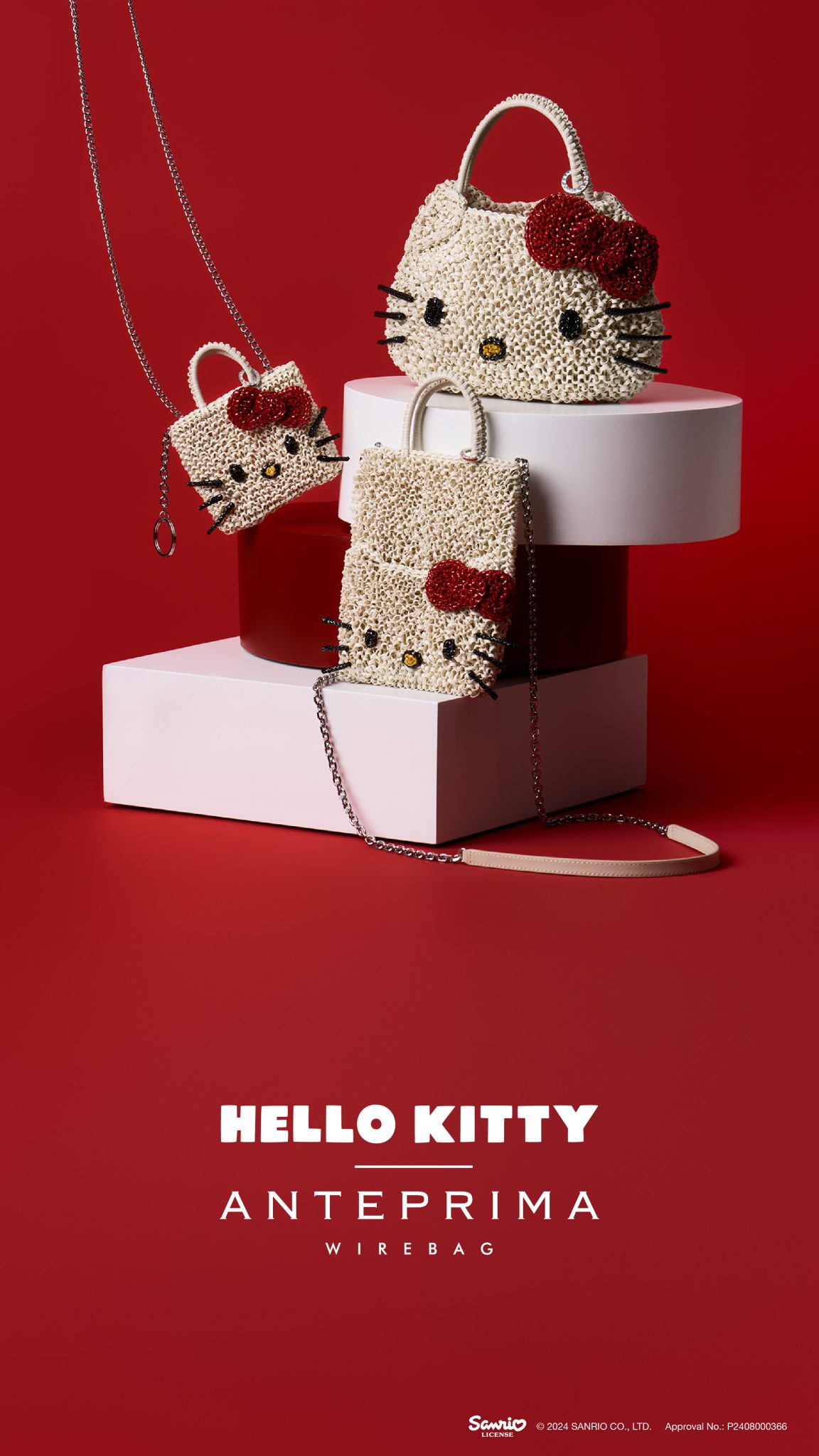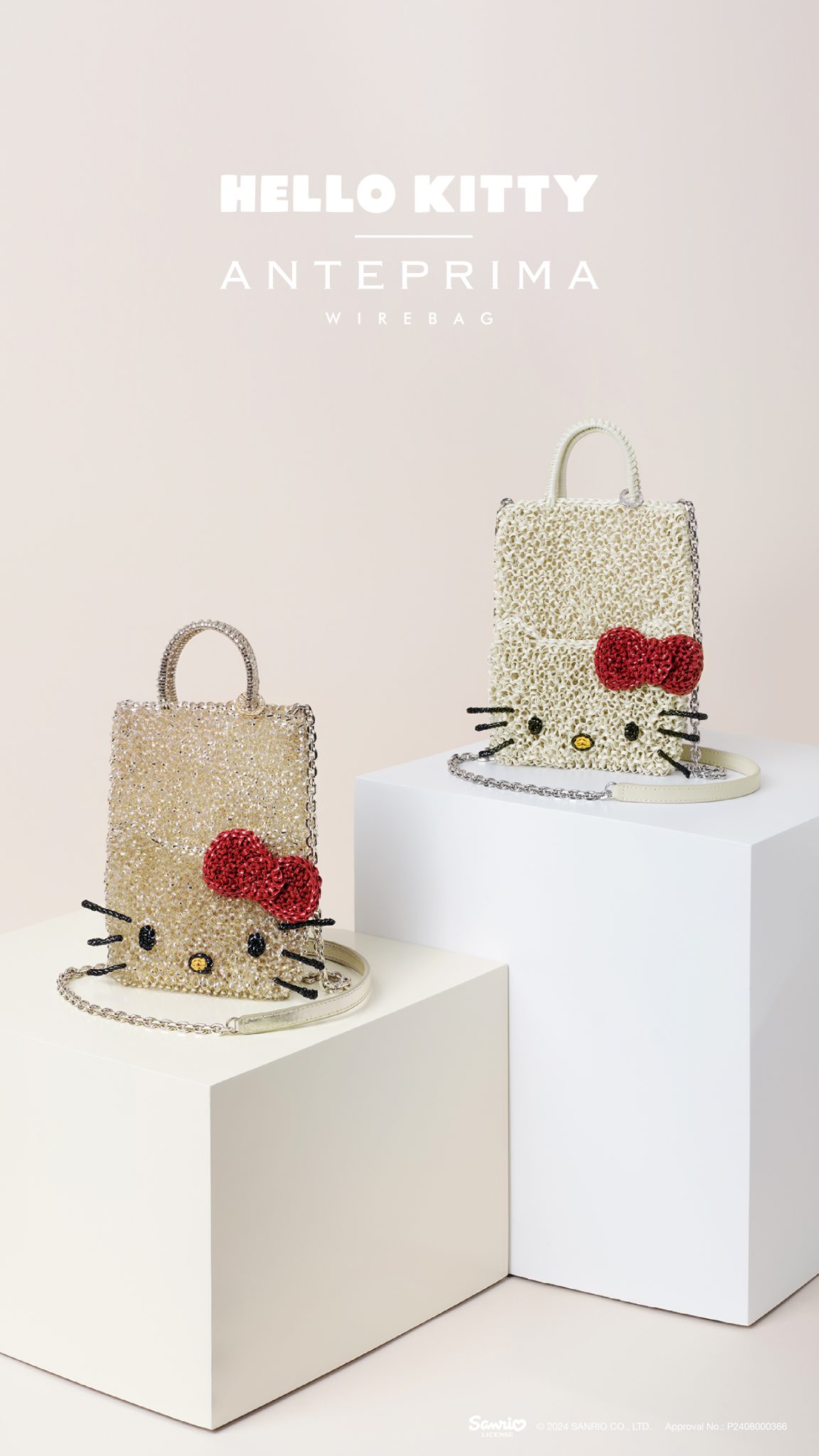 ANTEPRIMA 再度與 HELLO KITTY 攜手合作!適逢今年是 HELLO KITTY 的誕生50週年,新增 4款全新面貌包括手機袋和 Bucket Bag,將 HELLO KITTY招牌元素蝴蝶結和貓咪鬍鬚配以WIREBAG 經典耀目的閃金色及優雅的米白色,亦藉著系列將 HELLO KITTY 的玩味精神與品牌精湛的編織工藝完美融合,讓各位 HELLO KITTY 迷難以招架!