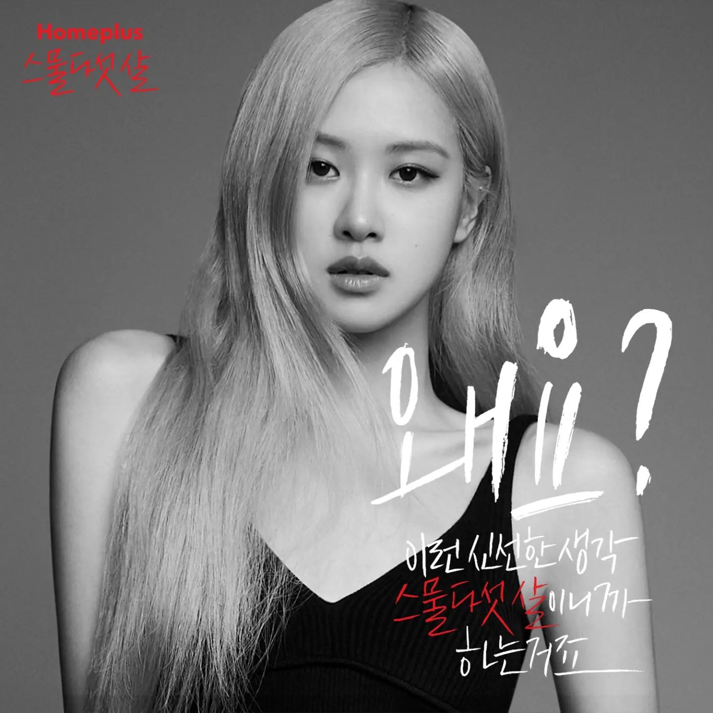 以黑白運鏡營造出神秘、優雅的氛圍,Rosé 身穿輕便的家居服,於餐桌上慵懶自在地隨音樂起舞、恣意倒臥在沙發上,接著高級的畫風一轉,切換到了彩色世界,原來是全球知名連鎖超市 Homeplus 的廣告,乍看還以為是高奢品牌的時尚大片呢。