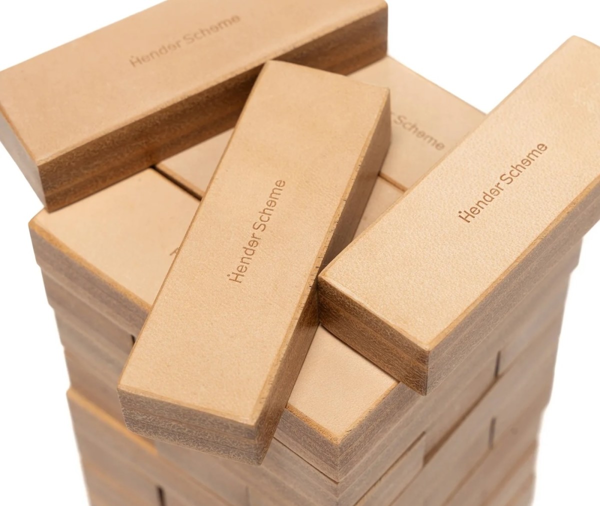 而這回 Hender Scheme 就以皮革來製作「Leather Tower Game」層層疊-每塊「皮革積木」均採用多層優質植鞣皮革並以手工製作而成,並飾有 Hender Scheme 標誌,並配以一個皮革外盒。這個皮革層層疊會隨著時間自然舊化並呈現出獨一無二的皮質外觀,由此展示出皮革非凡細膩的質感。