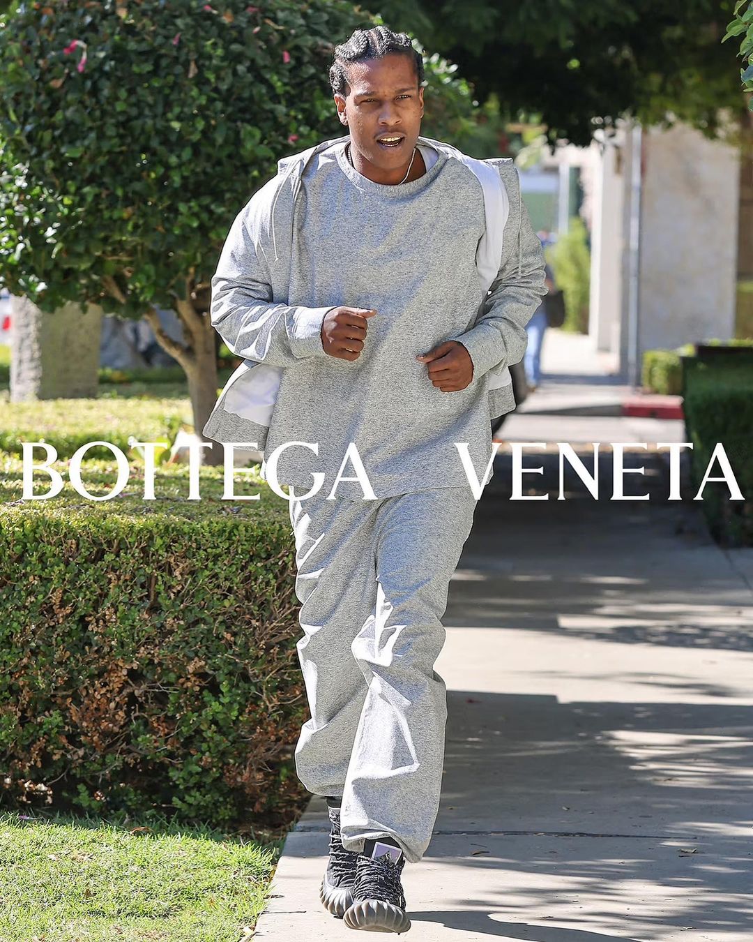 這兩輯形象照都是 Kendall Jenner 和 A$AP Rocky 去逛街、購物、遛狗和跑步等,非常平淡的生活,但其實他們都在穿戴 Bottega Veneta 的服飾和手袋,被狗仔隊們拍攝,讓狗仔隊們把拍攝到的照片上傳到 Getty Images 賺錢,及後 Bottega Veneta 就買下了這些照片,加上品牌 Logo 用作為最新的形象照。