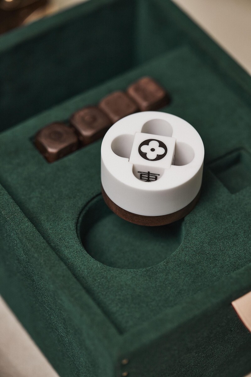 除此之外,品牌也推出了最新版本的麻將硬箱!新款的Vanity Mahjong麻將硬箱以經典的LV Monogram裝飾於外,內裏撲上奢華的松綠色絨布。重頭戲當然收納在抽屜格裡面的麻將組,每一顆麻將與骰子皆為純手工打造,並以品牌的logo圖樣取代傳統的麻將花樣,打造不一樣的打麻將體驗。