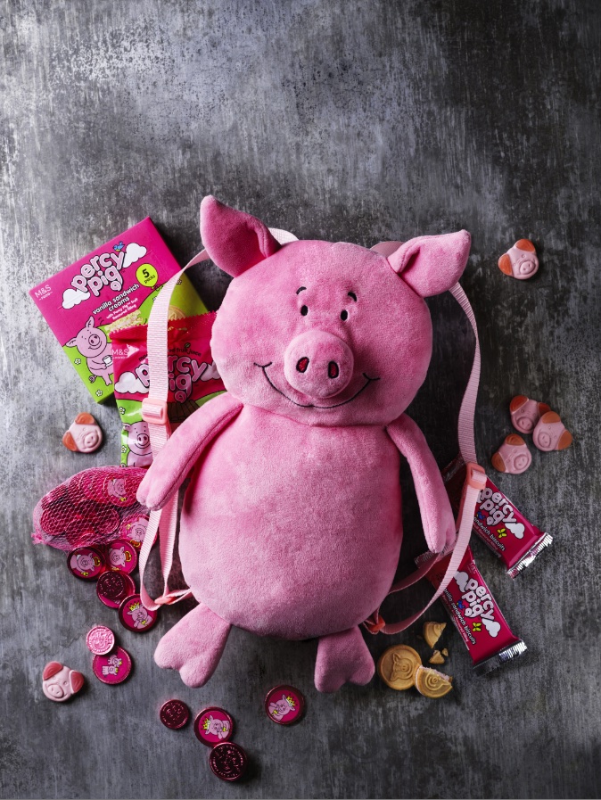 M&S推出有史以來第一個Percy小豬造型小背包,裡面裝滿Percy糖果、朱古力及夾心餅乾等小甜吃,還有Percy蛋糕DIY套裝、一系列色彩繽紛的Percy小豬派對裝飾及用品,讓小孩愛不釋手。