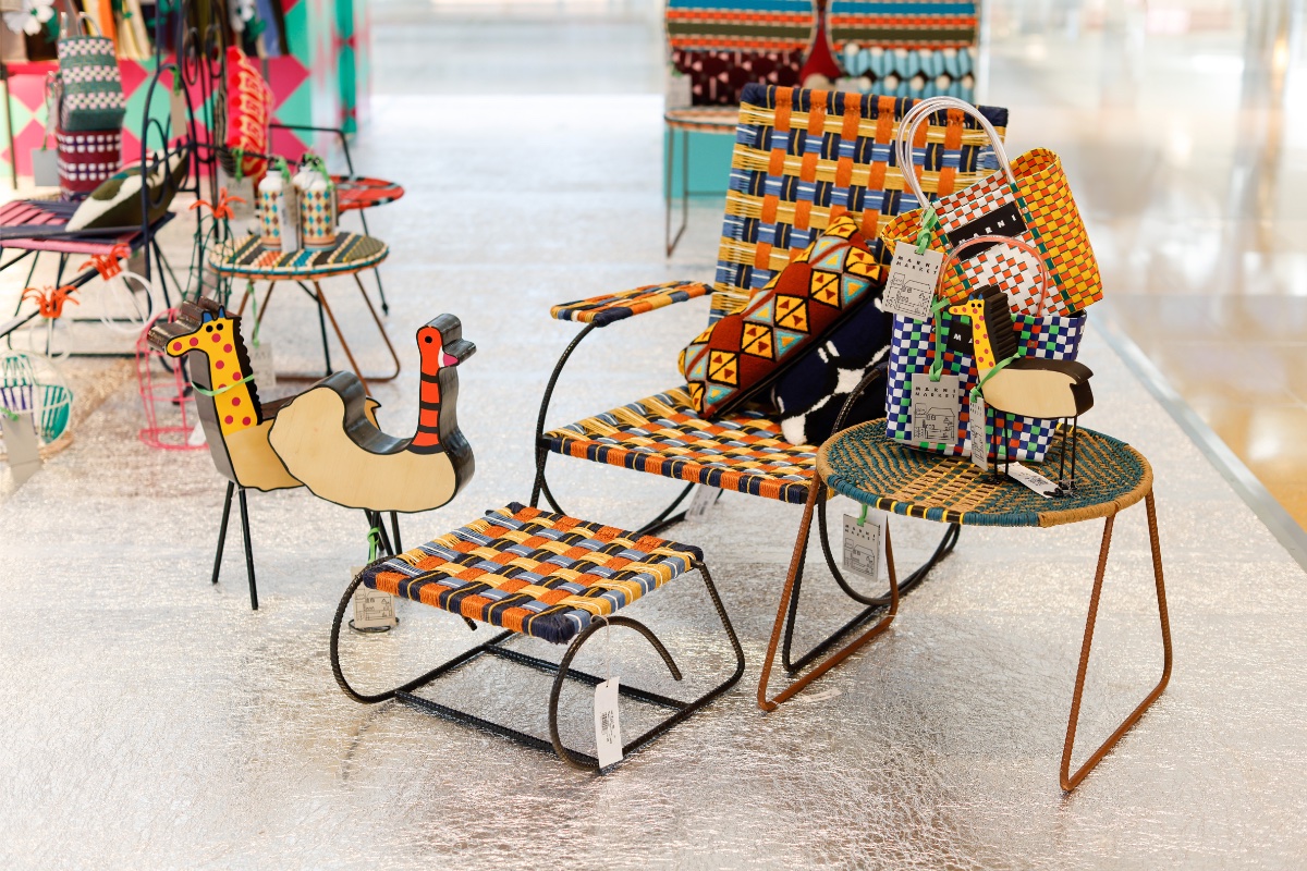 家居飾品融和時尚及匠心工藝,由哥倫比亞匠人手工編織,大膽混搭不同材質和色彩,帶來個性滿滿的印花圖案設計。除此之外,更有期間限定玻璃花瓶和編織雜誌架,趣怪而優雅。