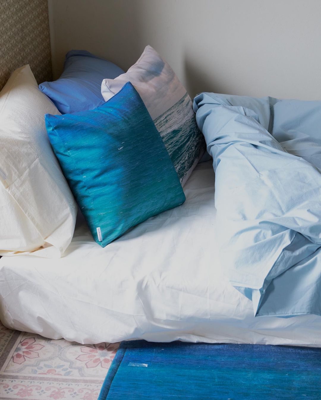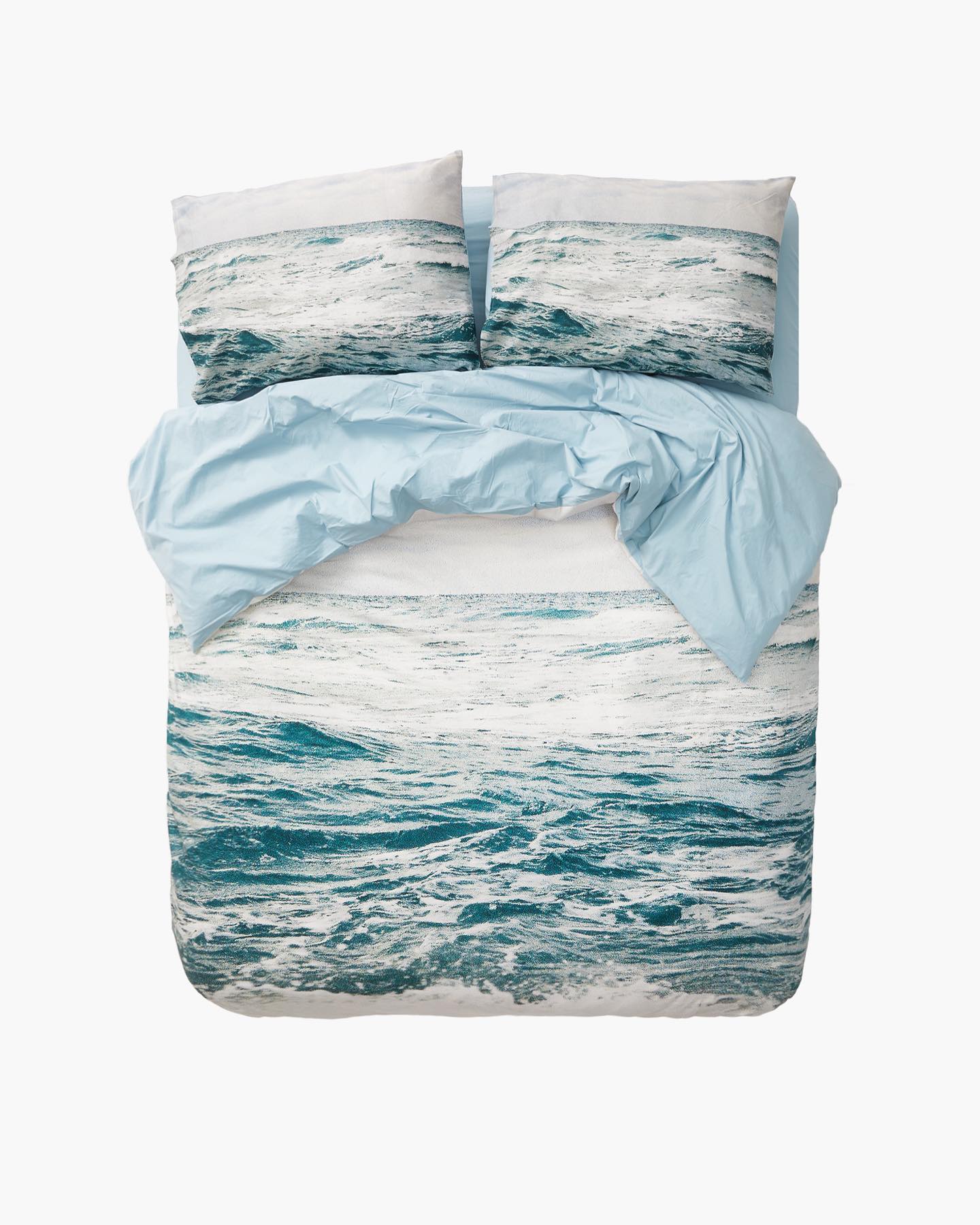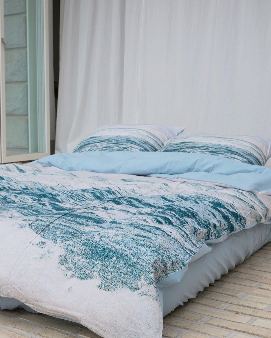 來自韓國的 Photozenia Goods寢具以攝影作品作為基礎,延伸出一系列的生活小物,像是床單、被套等,上頭印著滿版大海的照片,就像是置身照片現場般,看著看著就自然入睡了。