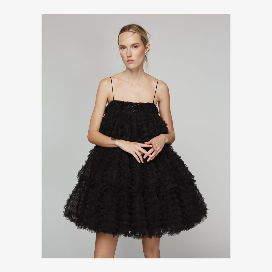 而 Rosé 這次穿著的是 SOONIL 在2023春夏推出的黑色短澎澎裙,澎澎裙可愛的剪裁輪廓展現出 Rosé 筆直的大長腿,也讓她宛如公主一樣可愛優雅。