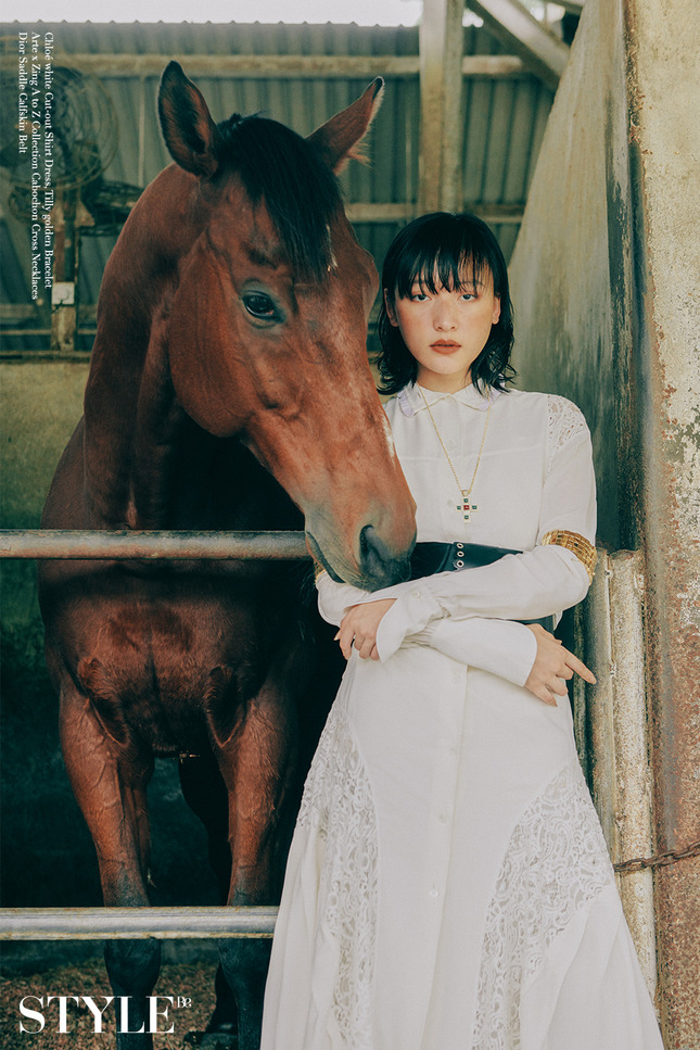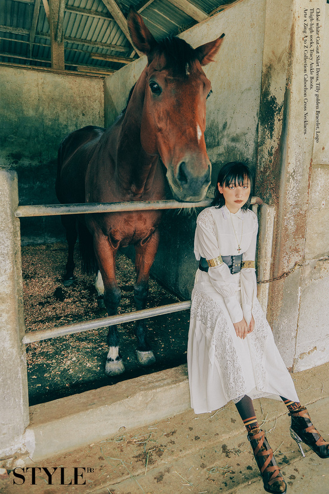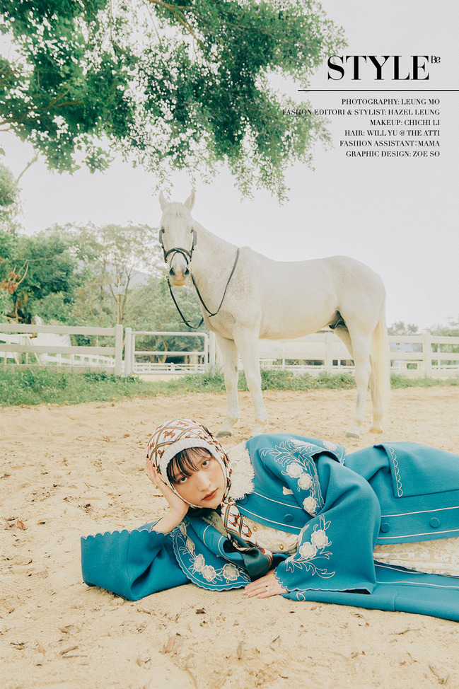秋色分名,每件衣服都蘊藏着不一樣的故事。穿起閃爍新裝的Hanna,在陽光底下與白馬相映成趣,新衣化作輕煙一縷迎接冬天的浪漫。