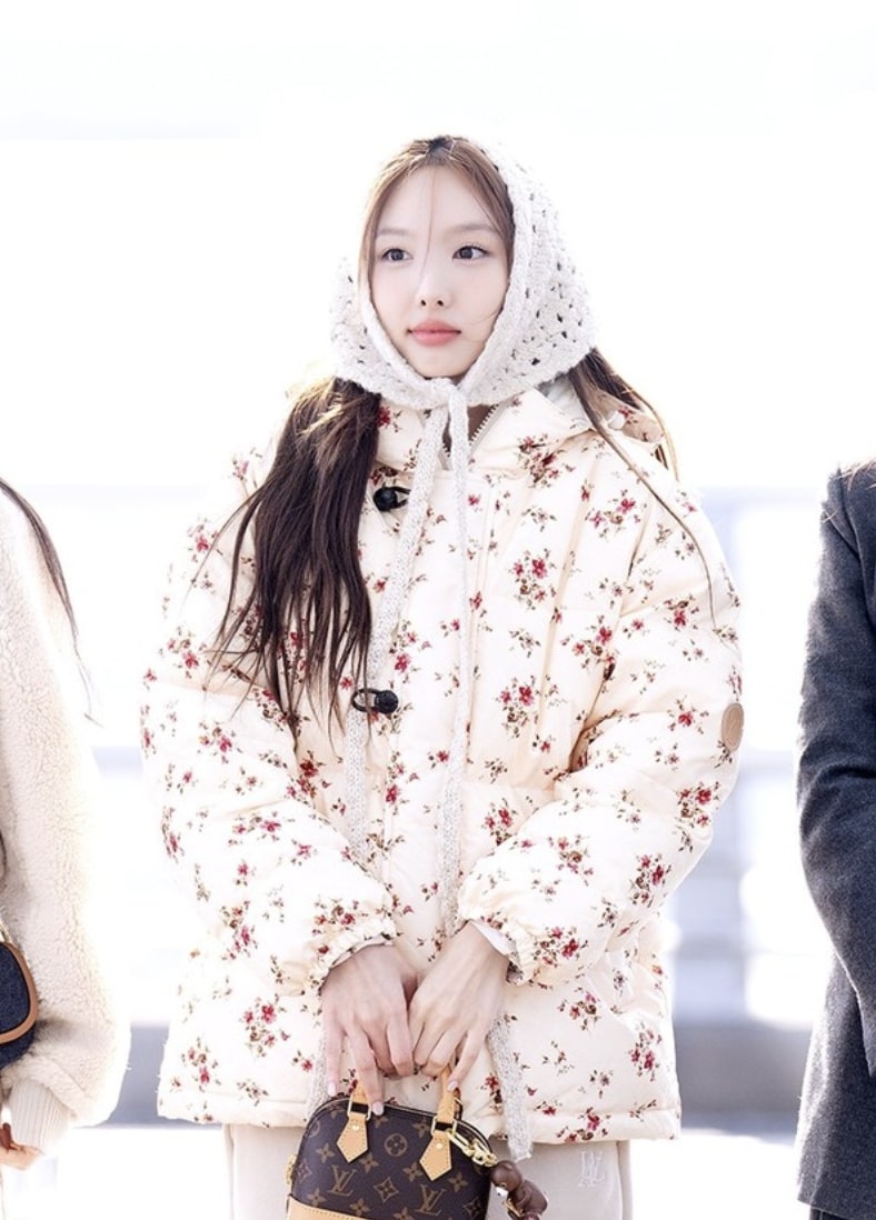 正值踏入12月末段,韓國天氣開始急降,因此不少韓國人也會戴上冷帽、穿上厚甸甸的服飾來禦寒,而 TWICE 成員娜璉可能是因為太冷的關係,她不但穿上白色的 Nayeon 小花圖案羽絨,而且還戴上白色的針織頭套,此復古風造型讓她看起來就像在冬天的老奶奶,可愛感十足!