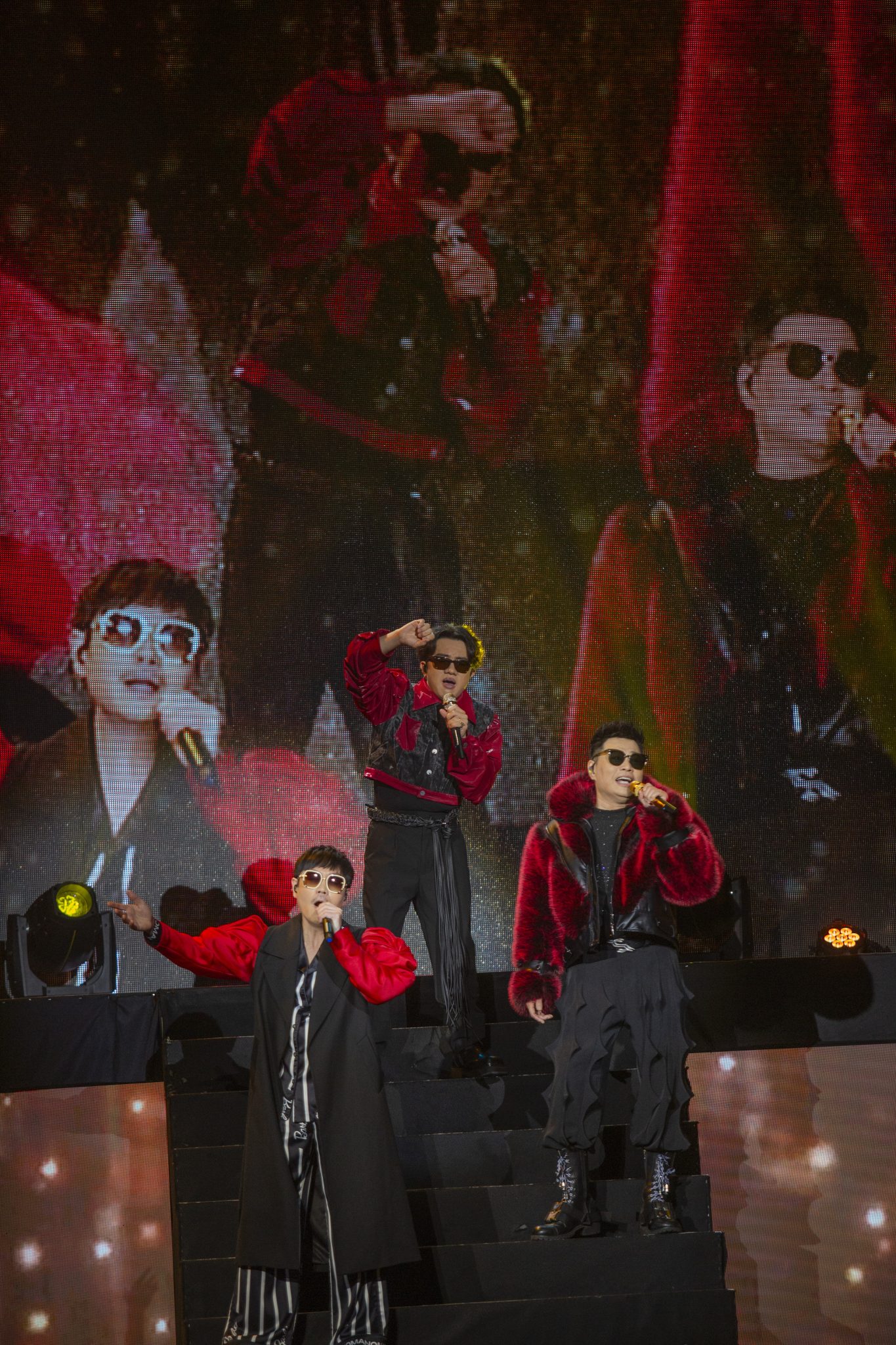 三子甫出場即獻唱一連串金曲:《皆大歡喜》、《萬水千山總是情》、《世間始終你好》、《真的漢子》和《祝君好》等,雖然距離上次來馬開唱僅一年多,但他們依舊火力全開,為答謝大馬的熱情粉絲,三子模仿了許冠傑、羅文、鄭少秋、PSY、鄭伊健、譚詠麟、張學友、郭富城等,功力可謂爐火純青。
