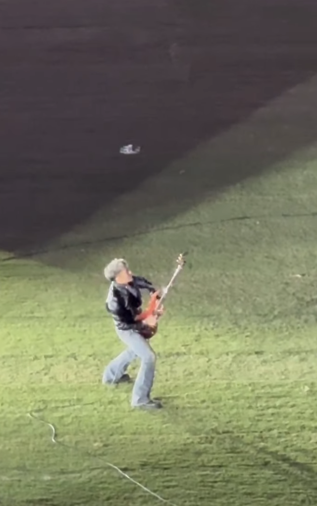 從網民分享的短片中見到,霆鋒拎上拿手的電吉他,背景音樂就播著名曲《活著VIVA》,而場地上空則有航拍機盤旋,相信是拍攝宣傳短片。