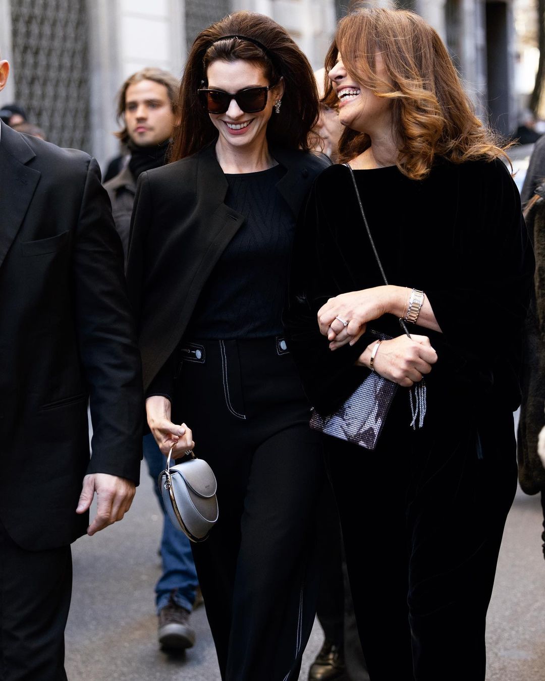 要說到2022秋冬米蘭時裝週上最美的女星,相信就是Anne Hathaway了!她日前和老公Adam Shulman一同出席 Giorgio Armani 2022秋冬時裝展。Anne Hathaway穿著了一身全黑的 Giorgio Armani 服裝亮相,黑色的鈕扣外套內搭黑色針織上衣,再搭配同色系的闊腳西褲,簡約率性的全黑造型中加入了銀色的手袋以及高跟鞋作點綴,展現出 6、70 年代的復古感覺。