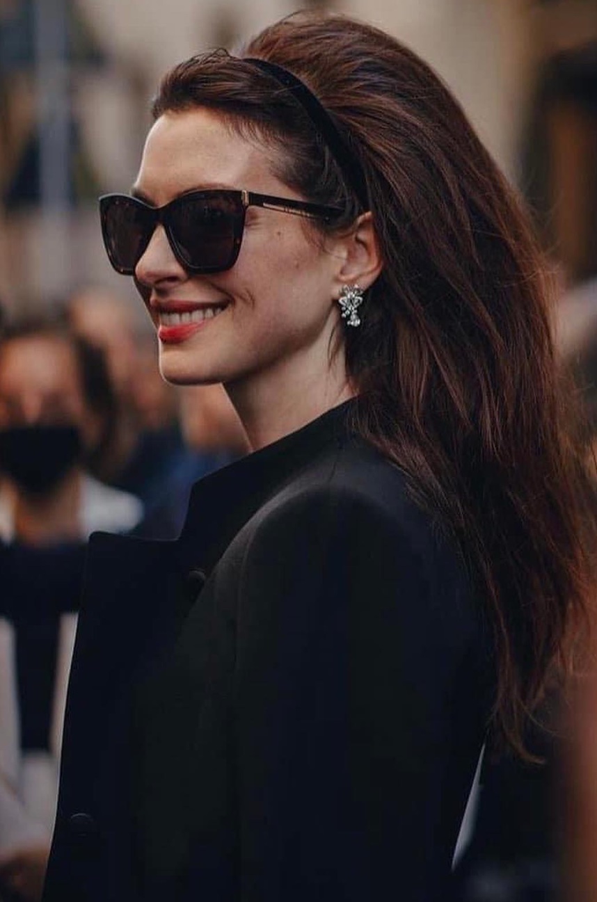 這身造型中最矚目的莫過於她的髮型,特別以髮帶搭配一頭高聳蓬鬆的長髮,手拎小提包,最後再以 BVLGARI 鑽石耳環點綴耳畔,優雅俐落的裝扮,仿佛讓人看見《The Devil Wears Prada》(穿Prada的惡魔)裡穿梭各大時尚場合的小安,在16年後變得更加成熟美麗的模樣!